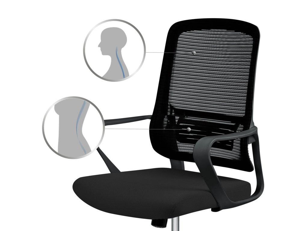 Oblikovani lumbalni dio pomaže održavati ergonomski i siguran držaj tijela. Prilagođava se obliku vašeg tijela i osigurava udobnost pri sjedenju.