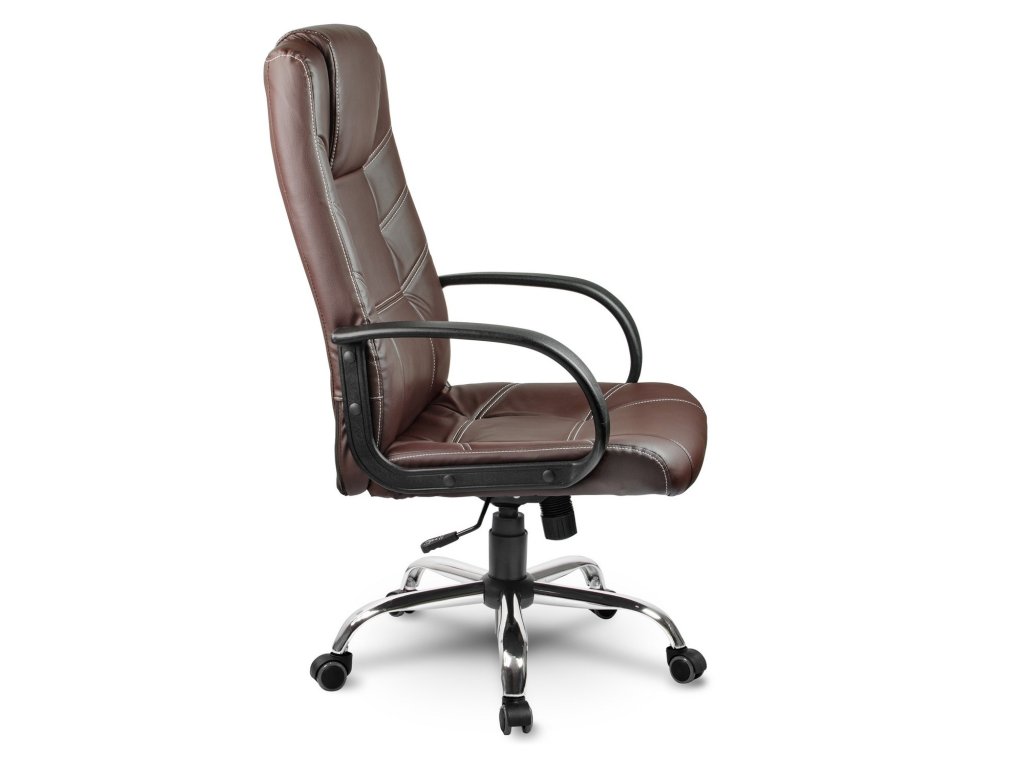 Stolica se ističe lakoćom izvedbe uz zadržavanje elegantnog i profesionalnog karaktera. Dizajneri su za vas odabrali prigušenu smeđu nijansu presvlake od ekokože, koja je ugodna na dodir. Boja lijepo kontrastira s bijelim šavom i daje stolici dinamiku.