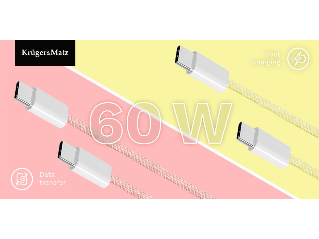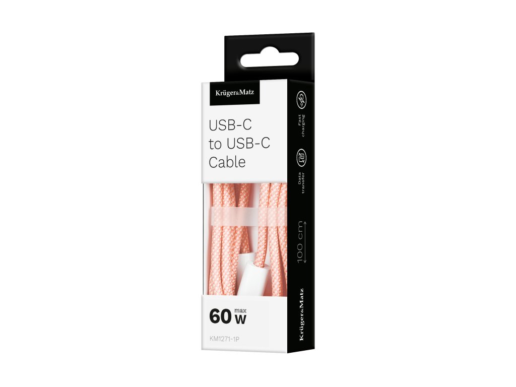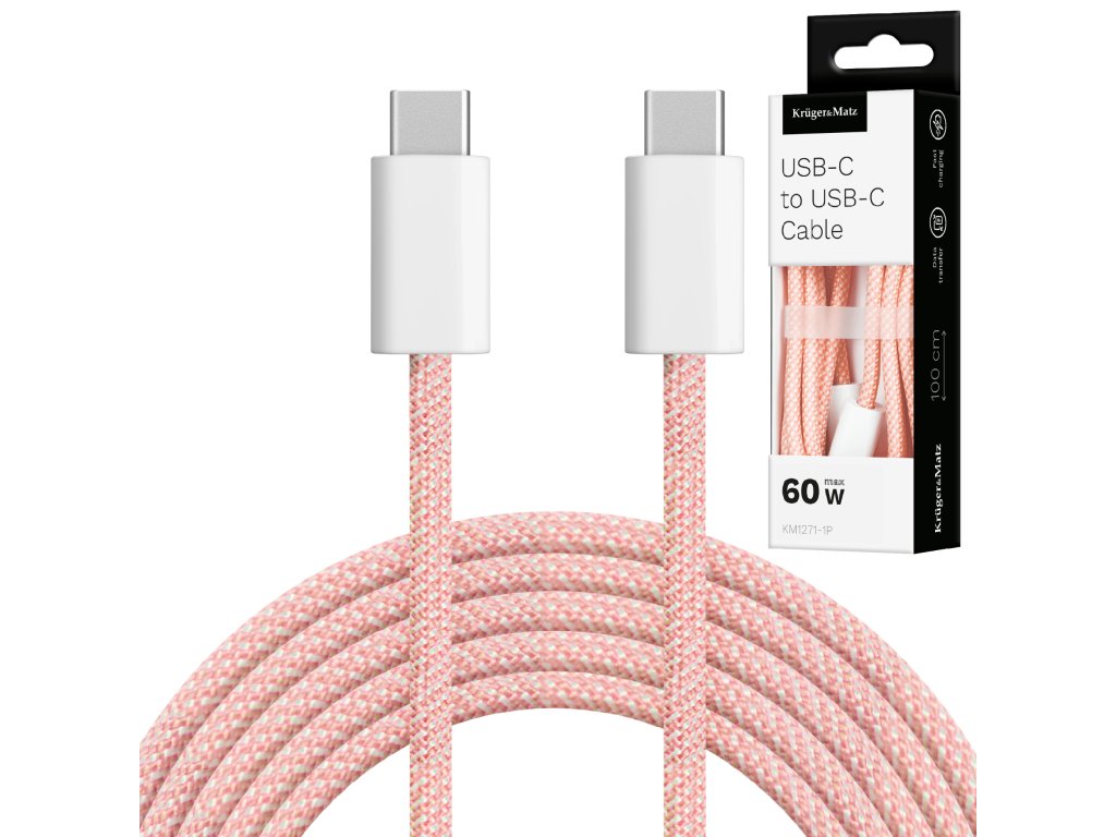 USB kabel tip C - USB tip C 60 W 1 m ružičasti Kruger&Matz Basic