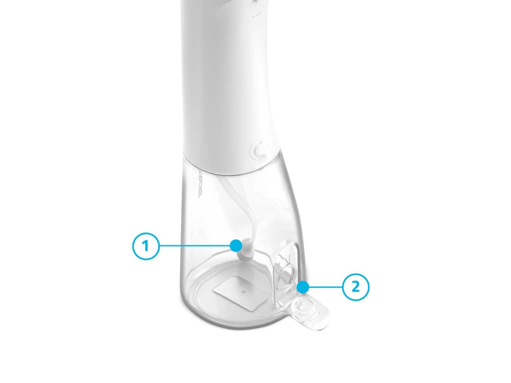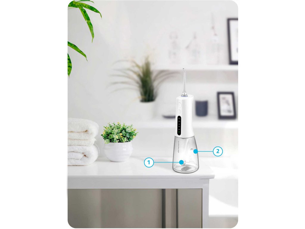 - Duži rad bez prekida: veći spremnik omogućuje duže navodnjavanje bez prekida za dopunjavanje vode, što je posebno korisno za osobe s ortodontskim aparatima ili mostovima.