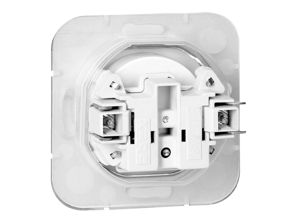 Modularna serija s okvirnim sustavom ploča. Serija modernih prekidača i utičnica, koja se skladno uklapa u originalne dizajnerske interijere. Moderan brzi spojni mehanizam prekidača (kabeli se povezuju umetnutjem izravno u tijelo) osigurava sigurnu i pouzdanu instalaciju i uklanjanje kabela. Utičnice su opremljene tradicionalnim vijčanim priključcima. Unutarnji dizajn stezaljki jamči sigurno spajanje kabela od 0,75 mm? do 2,5 mm?. Snažna i čvrsta montažna rešetka i posebni montažni elementi omogućuju stabilnu i sigurnu instalaciju u kutiji.Jednostavna francuska utičnica, 2P+E. Namijenjena za ugradbenu montažu. Treba se koristiti unutar prostora (IP20).