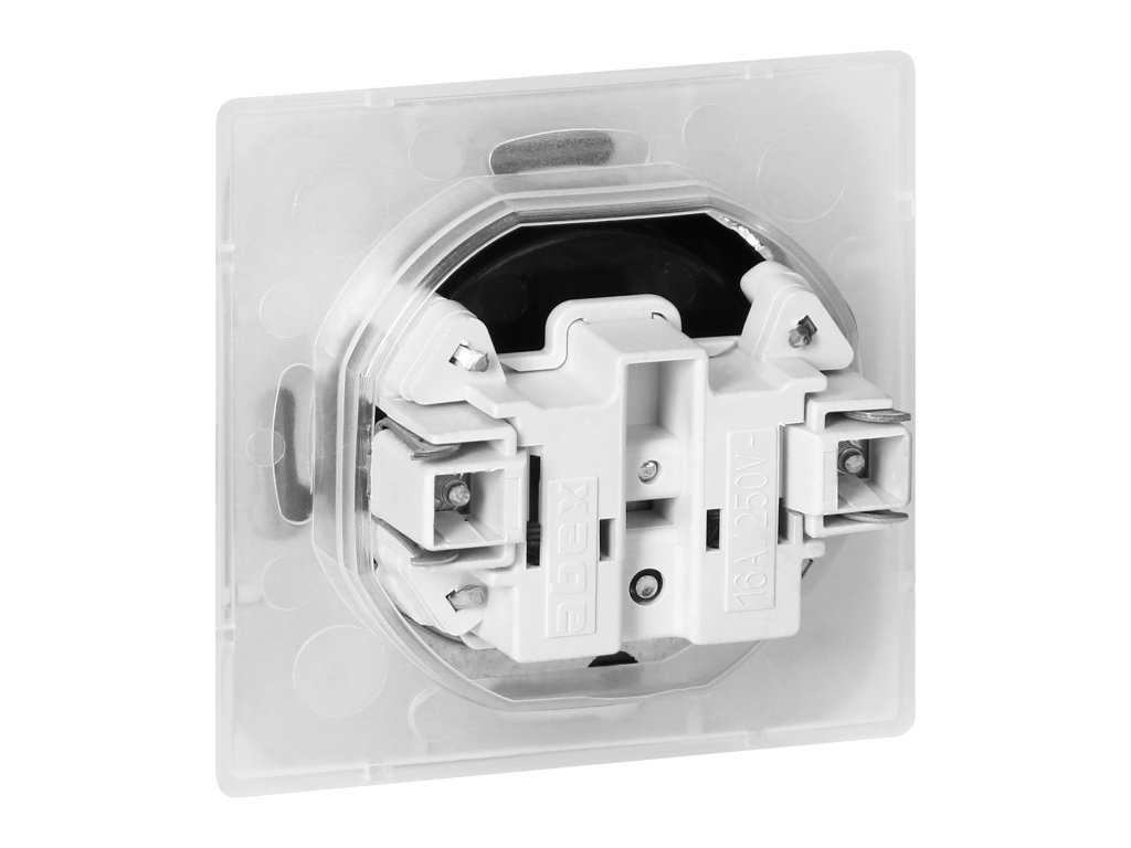 Modularna serija sa simetričnim sustavom ploče okvira (za 1-, 2-, 3-, 4-, 5-modula) omogućuje montažu proizvoda u horizontalnom i vertikalnom položaju. Moderni mehanizam za brzu vezu (žice se spajaju umetanjem izravno u kućište) omogućuje sigurnu i pouzdanu instalaciju te uklanjanje žica. Utičnice su opremljene tradicionalnim vijčanim spojevima. Unutarnji dizajn stezaljki jamči sigurno povezivanje žica od 0,75 mm do 2,5 mm. Čvrsta i robusna montažna ploča i visokokvalitetni samo-zatezni elementi omogućuju stabilnu i sigurnu montažu u kutiji. Posebni opružni elementi olakšavaju umetanje okvira u kućište.Pojedinačna francuska utičnica 2P+E, vodootporna s poklopcem. Namijenjena za ugradbenu montažu. Treba se koristiti u unutarnjim prostorima (IP20).
