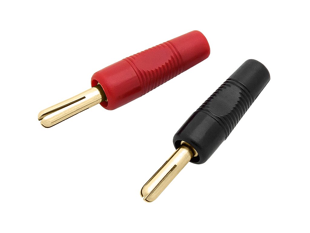 Visokokvalitetni pozlaćeni vijčani banana priključak u crnom i crvenom kućištu.