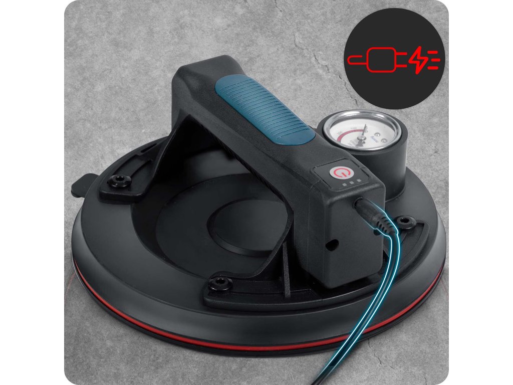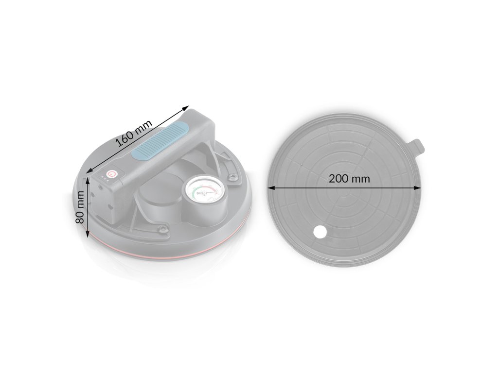 Profesionalna usisna čaša sa snagom podizanja do 200 kg, napajana baterijom litij 2400 mAh. Brzo punjenje (samo 2 sata), do 8 sati rada na jednom punjenju. Kompaktna, idealna za precizne montažne i transportne zadatke.