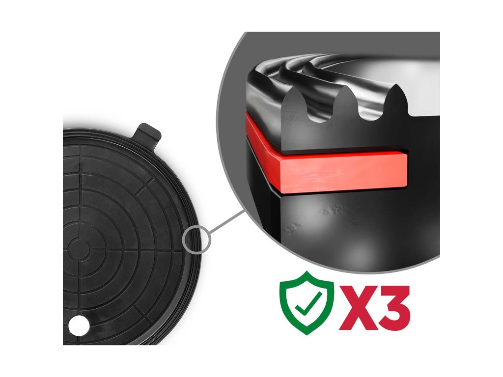 Posebna, trostruka gumena brtva osigurava savršeno prianjanje, pouzdano brtvljenje i učinkovito prigušenje vibracija.
