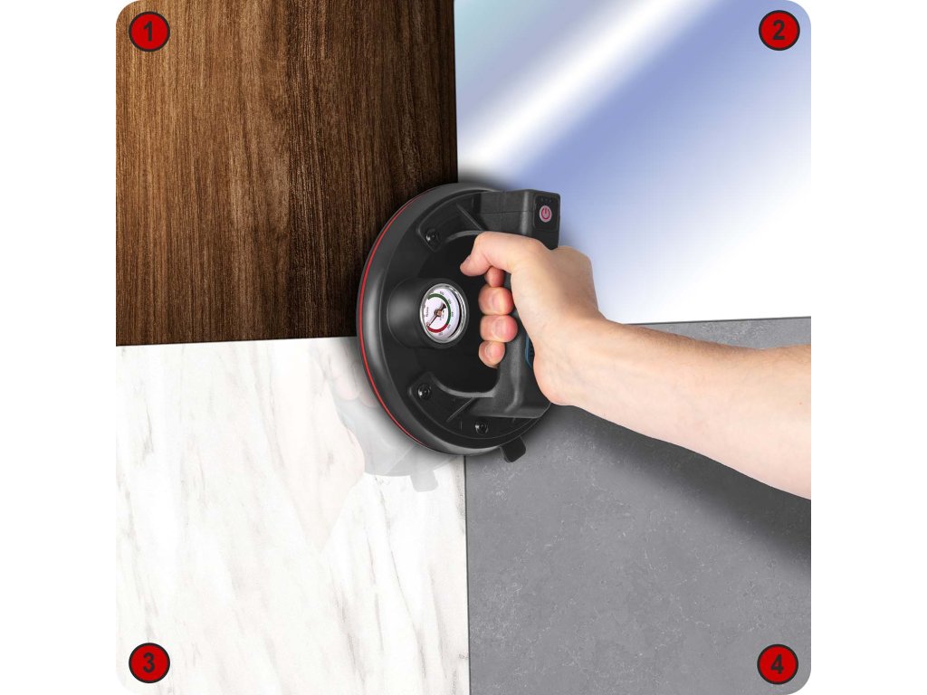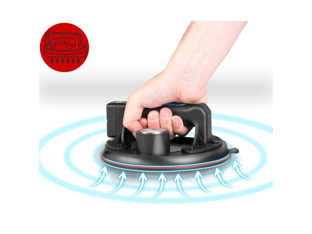Kada se postavi na glatku površinu, uređaj isisava zrak ispod gumenog diska. Stvara se snažno vakuumsko okruženje koje stabilno "prianja" na materijal.