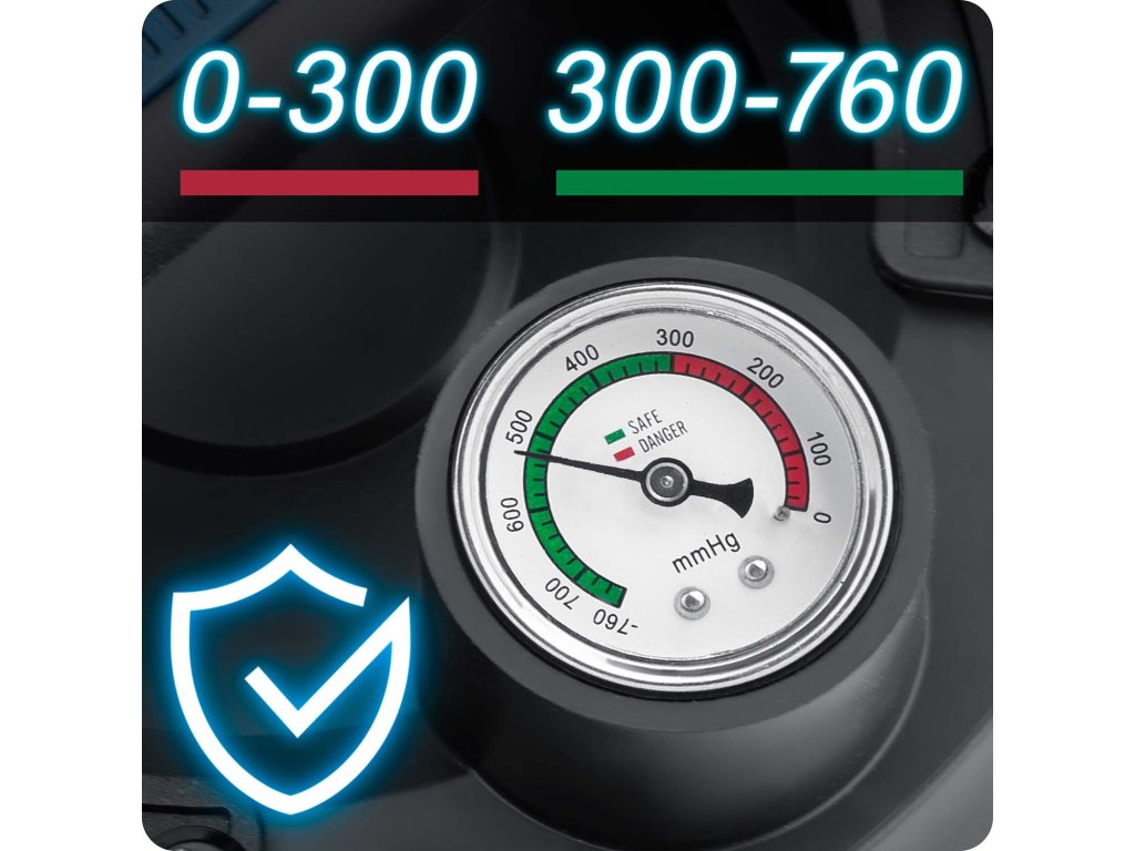 - 300–760 mmHg – optimalan podtlak – siguran i pouzdan stisak.