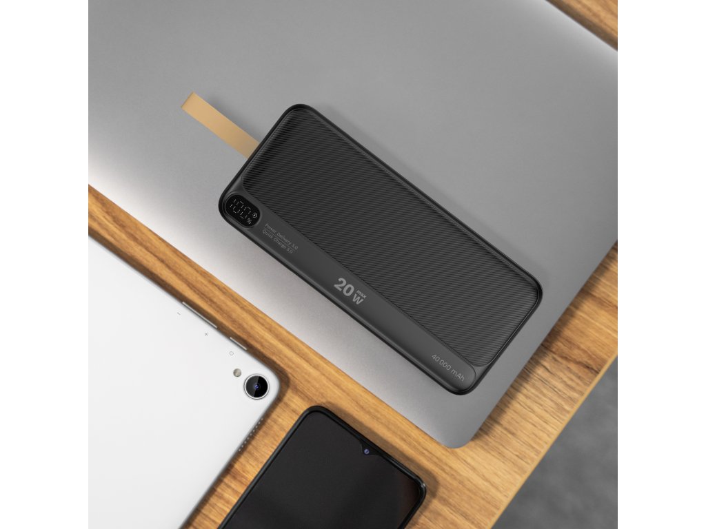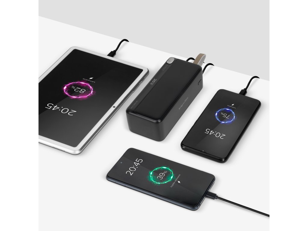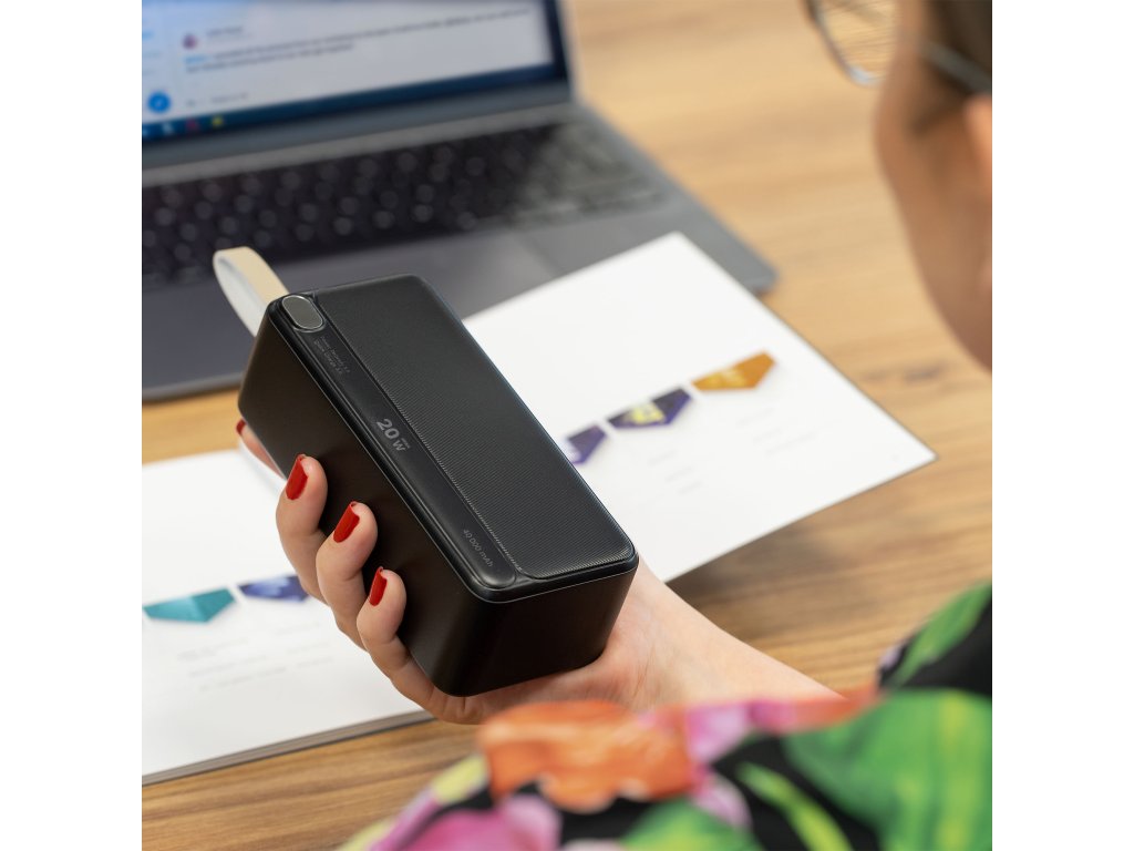 KM0908 je zaista moćna powerbanka! Uređaj je opremljen litij-ionskom ćelijom visokog kapaciteta 40 000 mAh . Zahvaljujući tome, uvijek imate pri ruci rezervu energije za produženje radnog vijeka vašeg pametnog telefona, tableta, prijenosnog računala, Bluetooth zvučnika i drugih uređaja koji zahtijevaju punjenje.