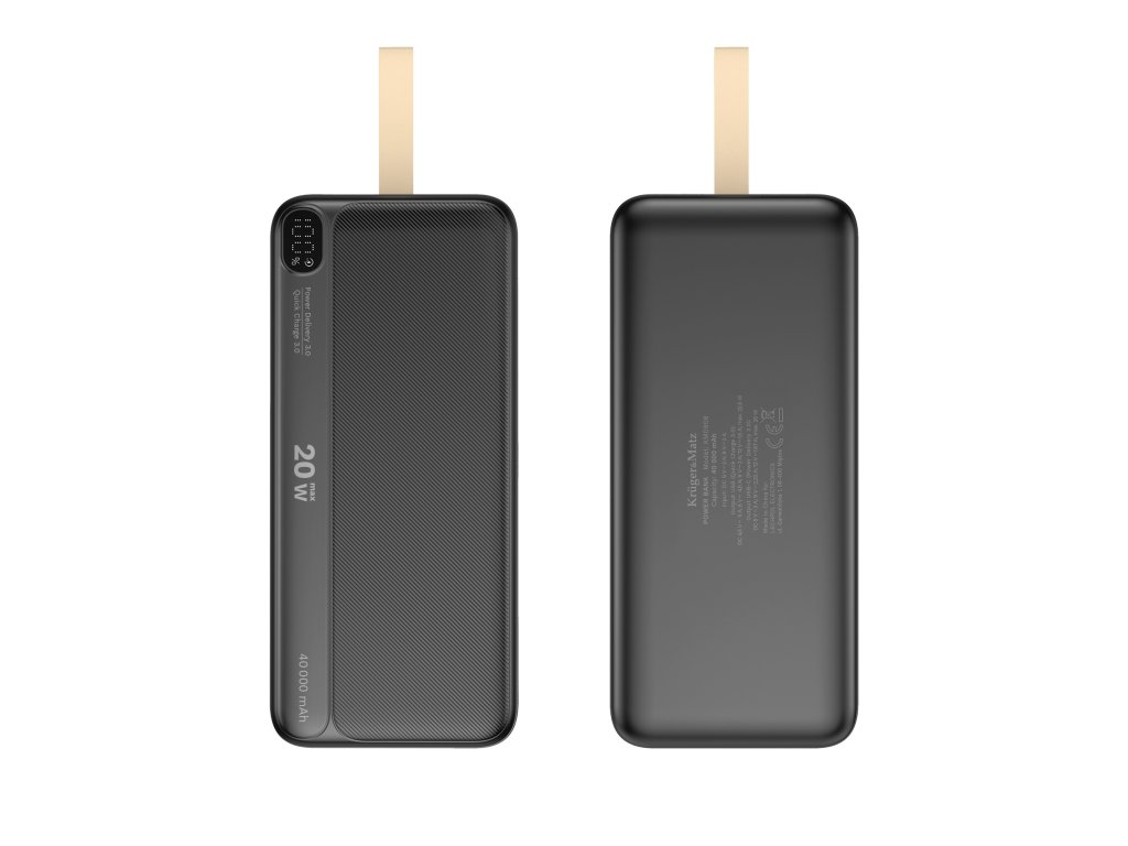 Prostrana napajna banka Kruger&Matz, opremljena s dva USB porta, USB-C i micro USB, nudi širok raspon kompatibilnosti. Zahvaljujući svojim naprednim funkcionalnostima, uređaj je idealan za punjenje raznih elektroničkih uređaja u uredu, na putovanjima ili kampiranju.