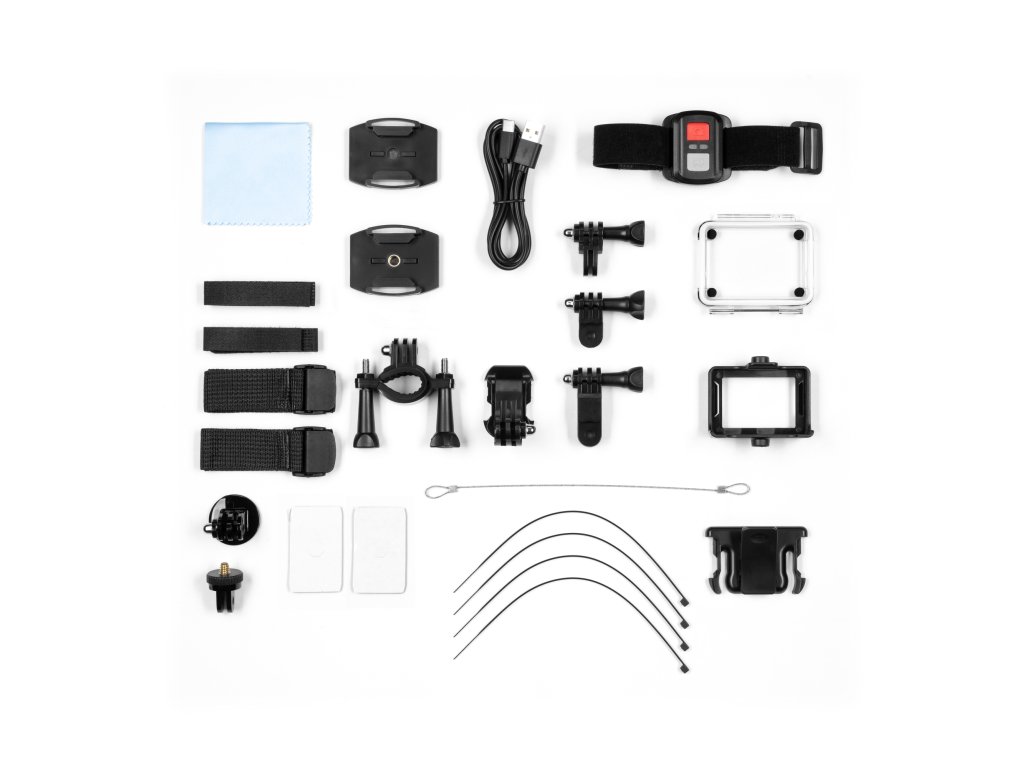 Dodatna oprema: Odvojiva ploča kutije, nosač za bicikl, okvir sa stezaljkom, 2x stezaljka za pričvršćivanje s trakom, 2x kratki zlatni kabel, 1x dugačak konektor, glava, 2x traka s čičak-vezom, 2x traka s gumbom za pritisak, 2x montažna traka, sigurnosno uže, 4x pričvrsna traka, krpa
