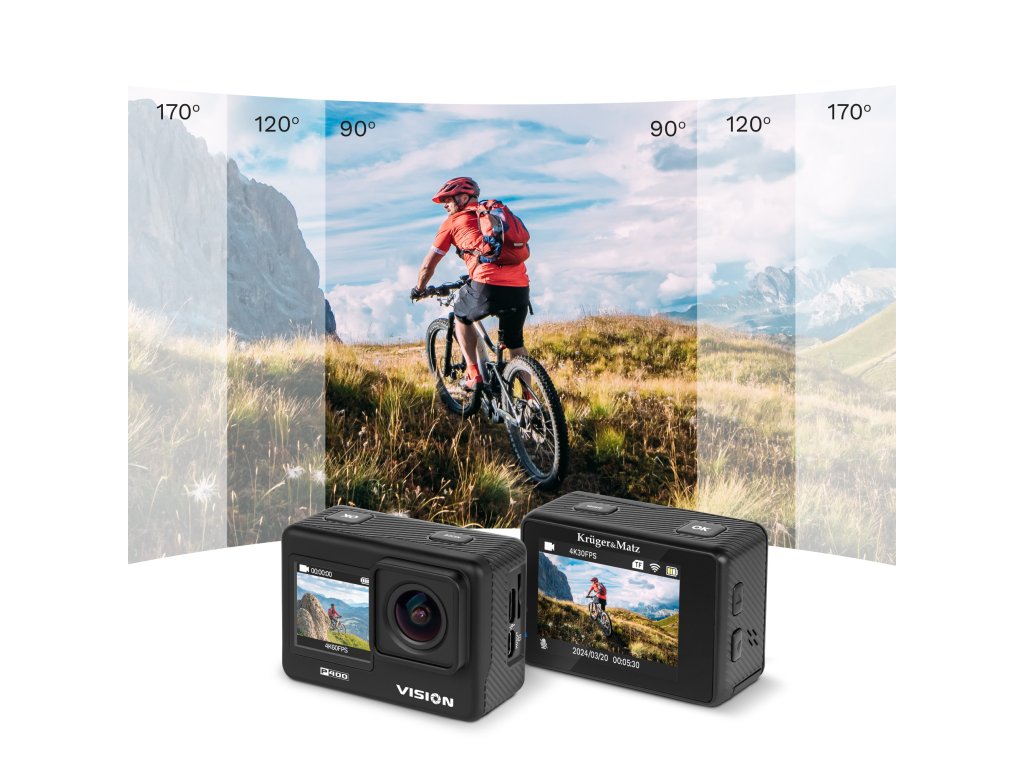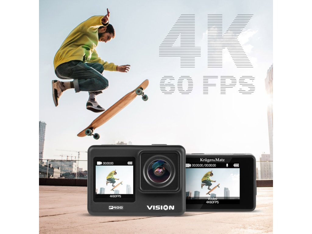 Sportska kamera Kruger&Matz Vision P400 omogućuje vam snimanje videozapisa u 4K kvaliteti pri 60 sličica u sekundi. Uređaj također podržava H.265 kodek! Takve postavke osiguravaju da uređaj bilježi svaki detalj vaših najuzbudljivijih avantura.