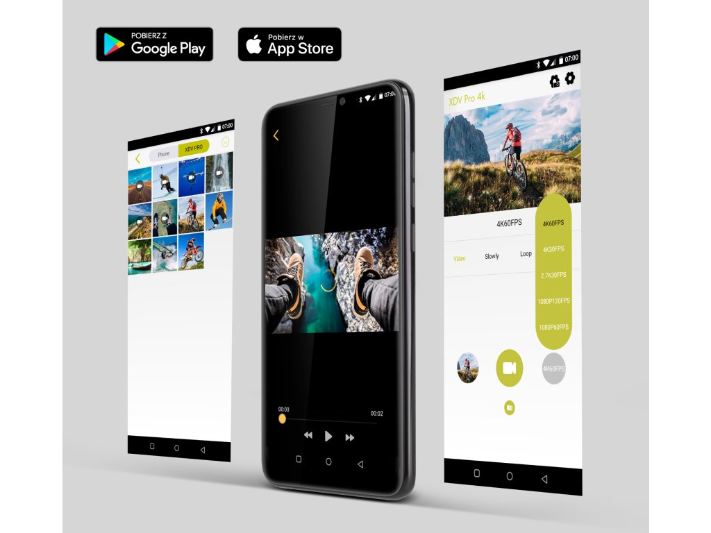 Posvećena aplikacija XDV PRO omogućuje vam ne samo upravljanje funkcijama vaše sportske kamere s vašeg pametnog telefona, već i kontinuirano praćenje snimljenog materijala i dijeljenje, npr.