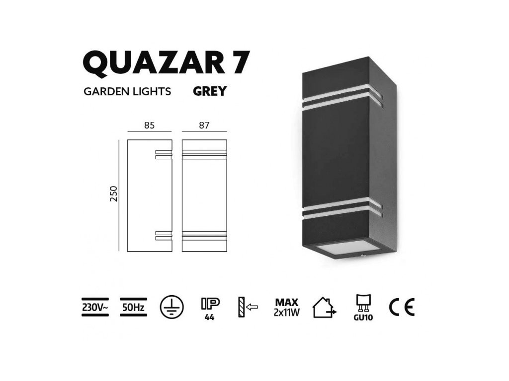 Vanjska zidna svjetiljka QUAZAR 7 siva