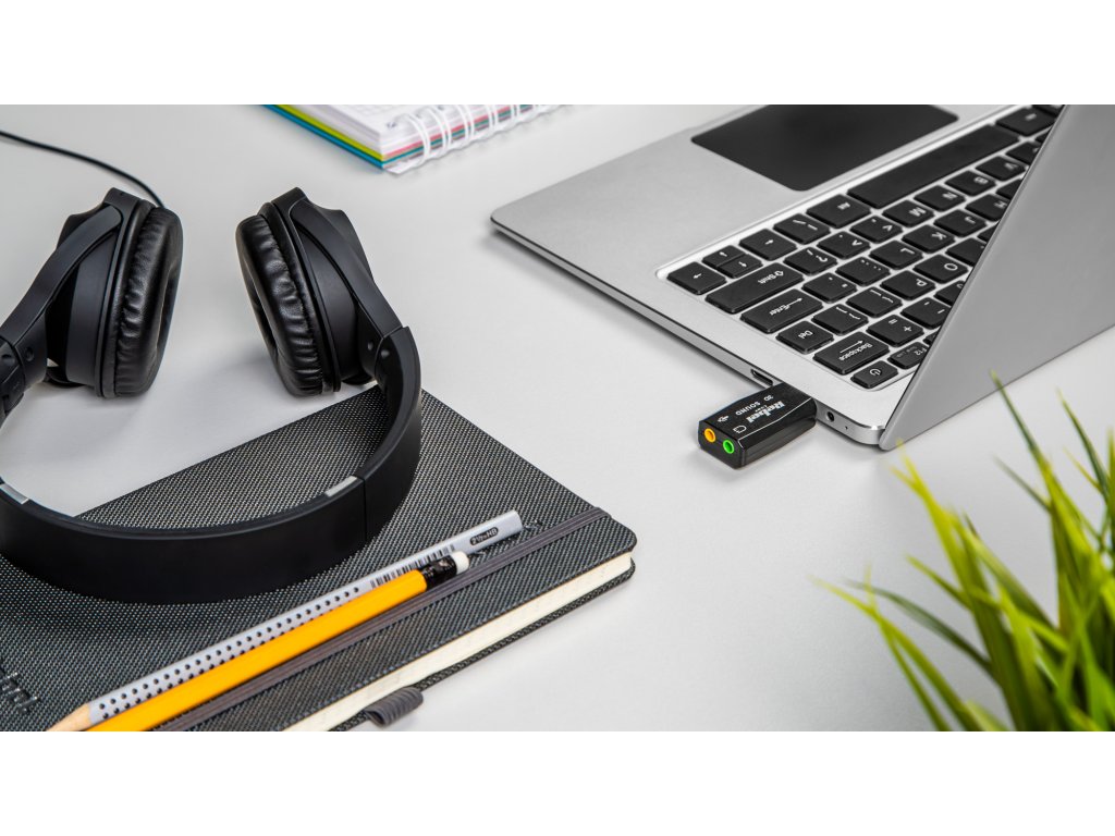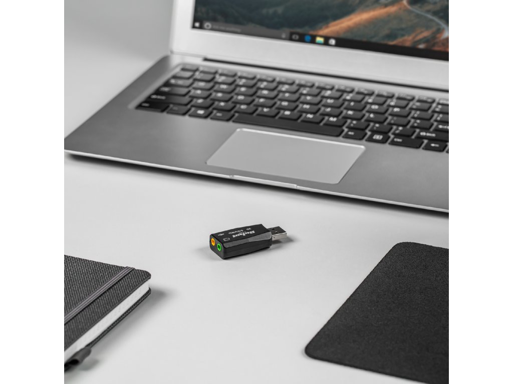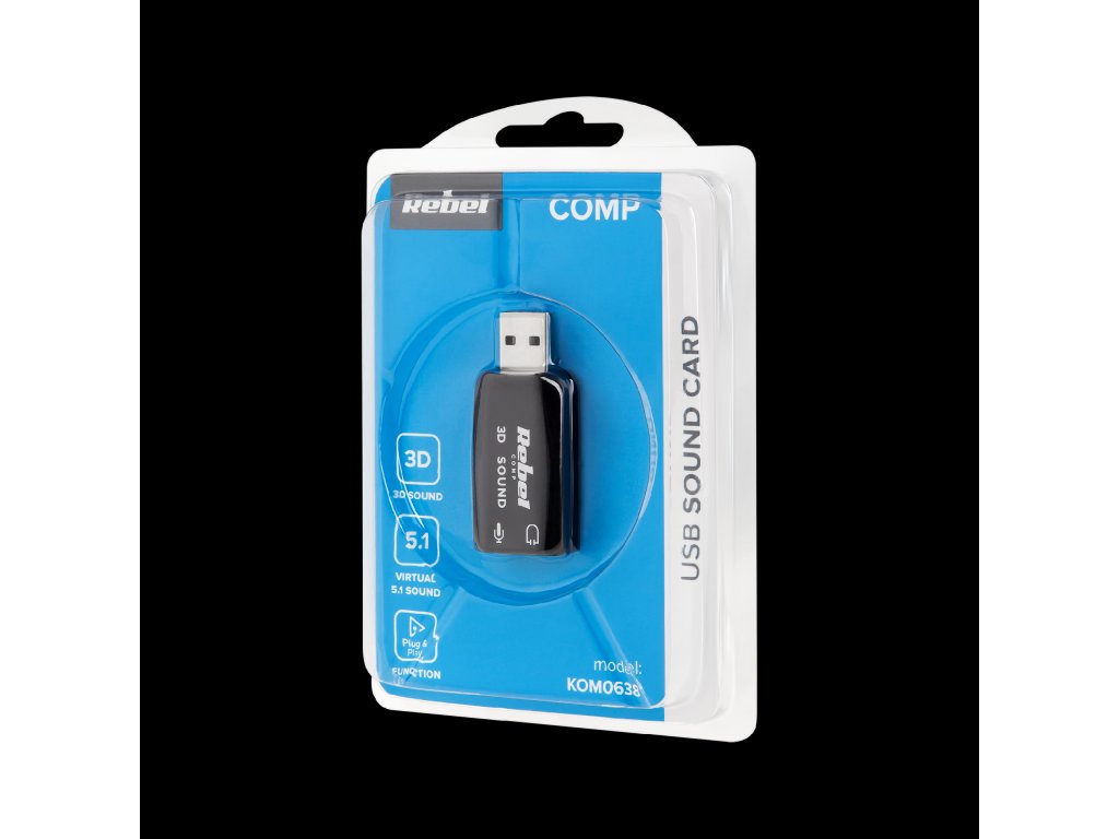Vaše računalo ili prijenosno računalo nema ugrađenu zvučnu karticu ili je oštećena Eksterni USB zvučna kartica serije Rebel Comp savršeno je rješenje za vas! Zahvaljujući dvama izlazima omogućuje vam povezivanje čak i slušalica ili mikrofona. Također treba napomenuti da ovaj dodatak podržava 3D zvuk i virtualni 5.1 zvuk, što znači visoku kvalitetu zvuka.