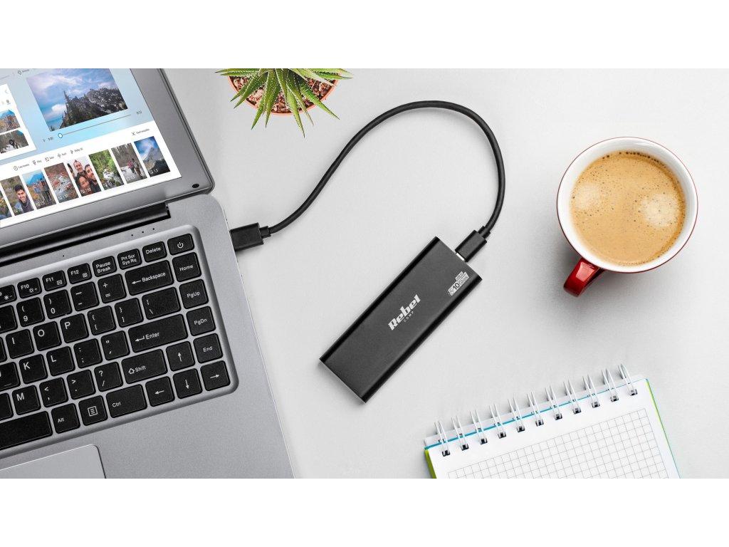 Vanjsko kućište Rebel kompatibilno je s M.2 SATA diskovima maksimalnog kapaciteta 2 TB. Važno je napomenuti da je vrlo univerzalno, jer podržava tvrde diskove kao i SSD diskove te sve popularne operacijske sustave, uključujući Windows, iOS i Linux. Štoviše, zahvaljujući korištenju USB 3.1 tipa C sučelja, kućište može prenositi podatke brzinom do 10 Gb/s.