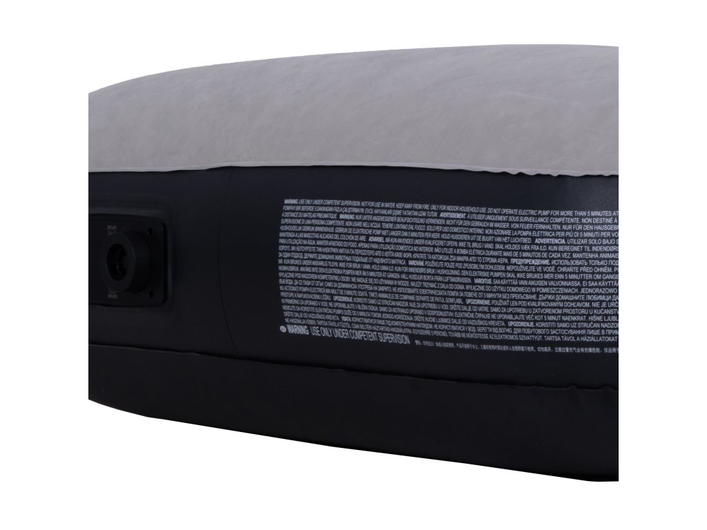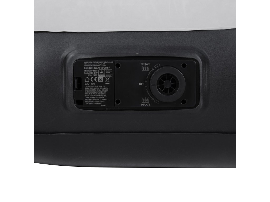 Zahvaljujući ugrađenoj električnoj pumpi (220–240 V, 50 Hz) madrac napuhat ćete za 1 minutu. Maksimalno opterećenje 100 kg i čvrst PVC jamče trajnost, a set uključuje zakrpu za popravak, kako biste uvijek bili spremni na iznenađenja.