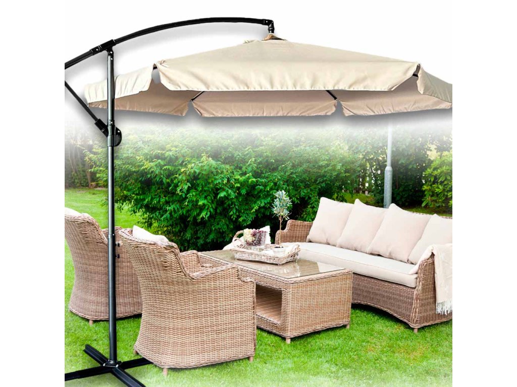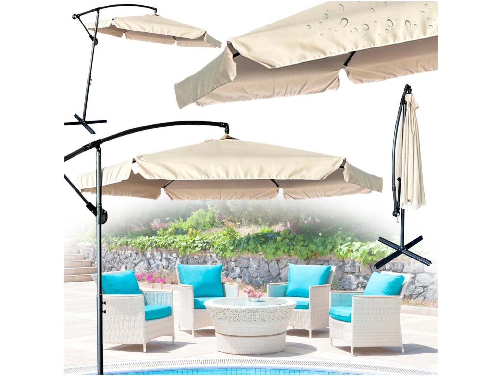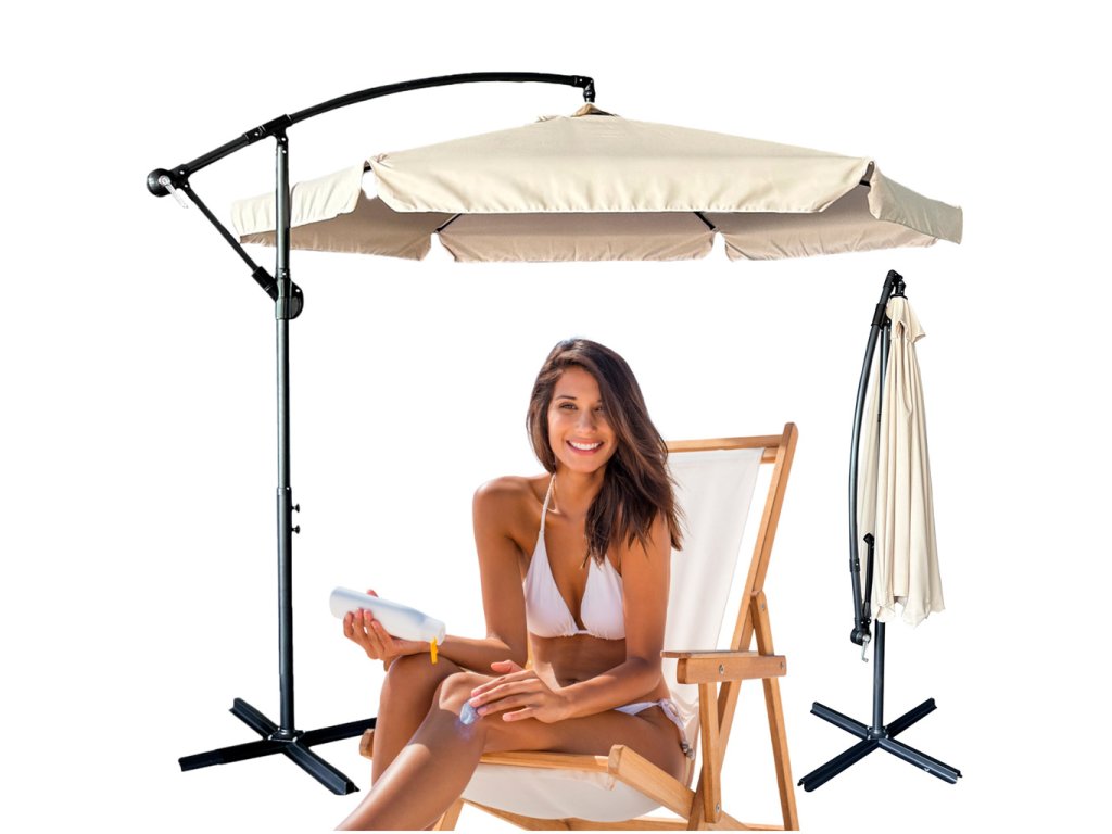 Bež boja suncobrana daje mu moderan, univerzalan izgled koji se savršeno uklapa u svako vrtno okruženje. U paketu jezaštitni pokrov, koji učinkovito štiti nadstrešnicu od prašine i vlage izvan sezone.