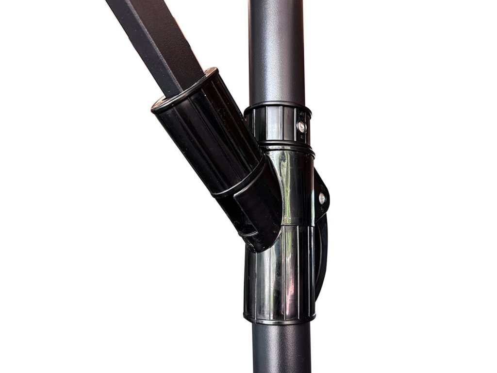 - bočna potpora omogućuje vam iskorištavanje prostora ispod suncobrana bez smetajućeg stupa u sredini ? Sklapanje bez napora
