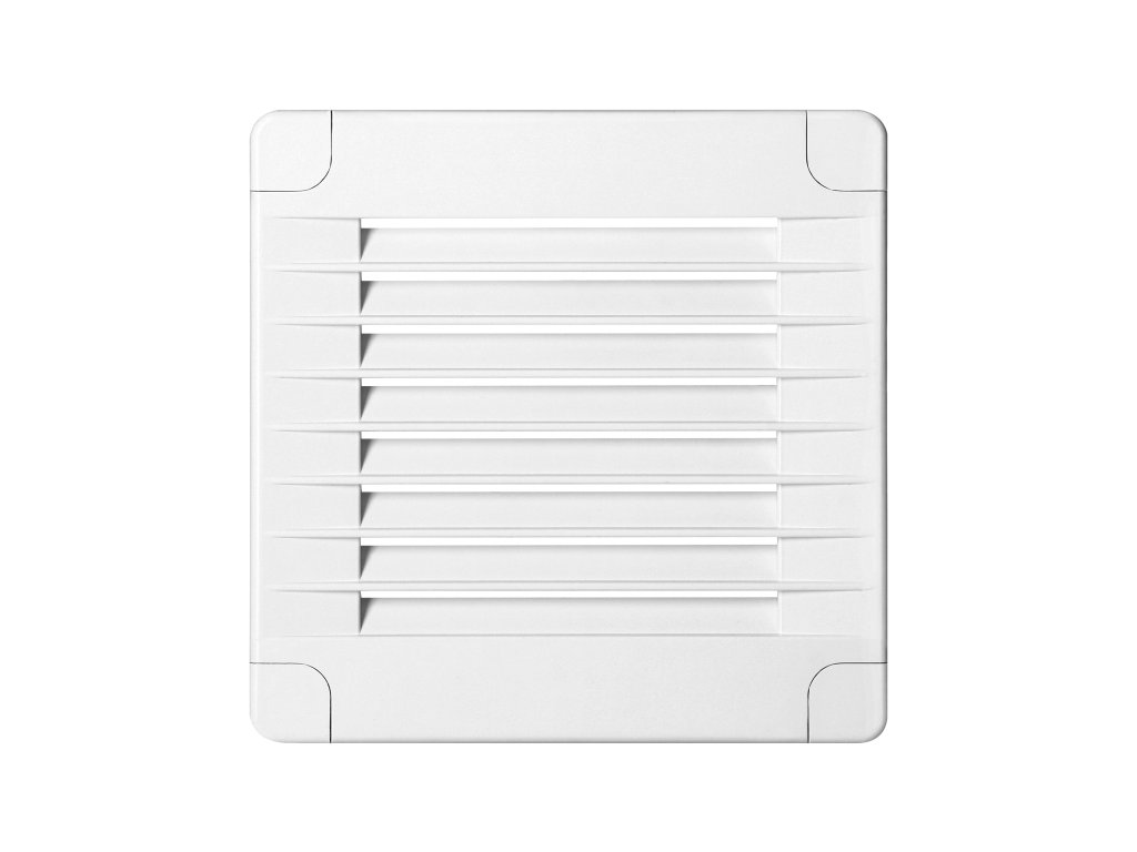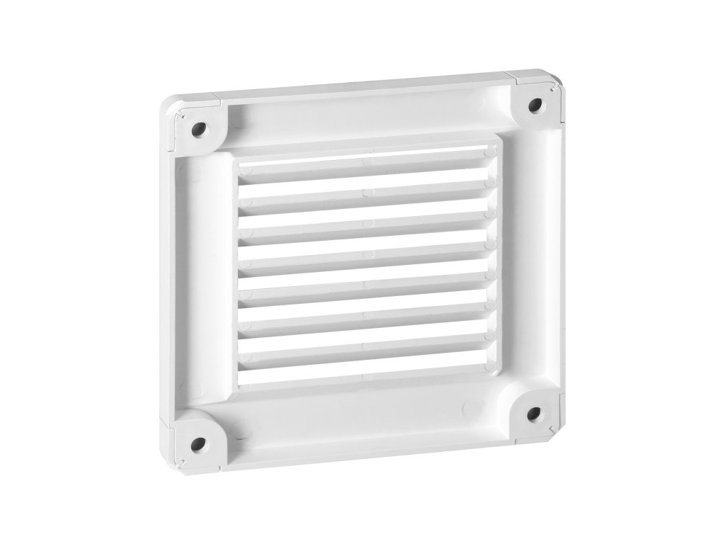 Ventilacijska rešetka namijenjena za ventilaciju vani i unutar zgrade. Rešetka ima otvore u kutovima za olakšanu instalaciju. Otvori su prekriveni posebnim kapicama, tako da vijci nisu vidljivi. Nema prirubnicu - potpuno je ravna, što znači da može prekriti otvor bilo kojeg oblika.Materijal rešetke: ABS.