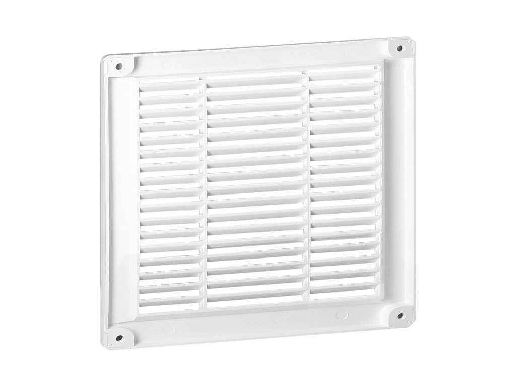 Ventilacijska rešetka namijenjena za ventilaciju izvan i unutar zgrade. Rešetka ima otvore u uglovima za olakšanje instalacije. Otvori su prekriveni posebnim poklopcima, tako da vijci nisu vidljivi.Nema nikakvu prirubnicu - potpuno je ravna, što znači da može prekriti otvor bilo kojeg oblika.