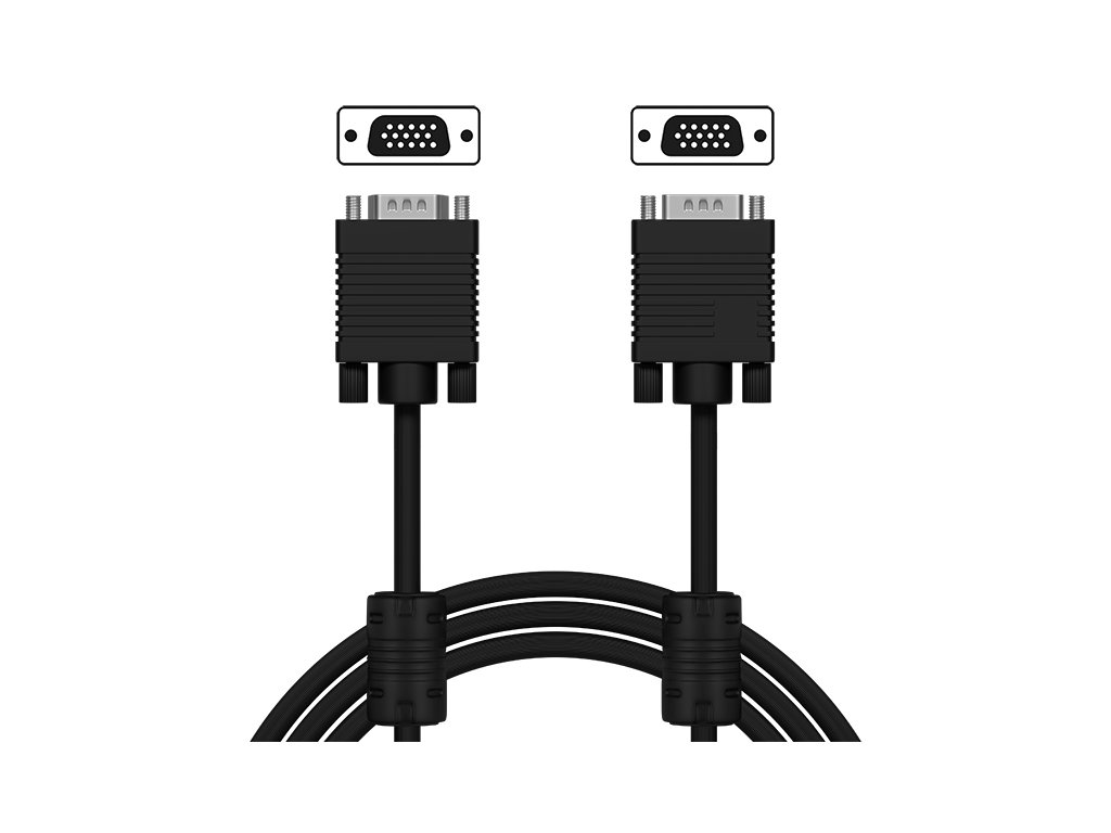 VGA - konektor VGA (D-SUB 15 pin) namijenjen za prijenos analognog signala s računala na projektore, televizore i LCD, CRT i plazma monitore. Kabel je izrađen od crnog kabela otpornog na savijanje. Specifikacija:- Priključak: VGA (muški) na VGA (muški)-Kabel: crni, okrugli, otpornog na udubljenja-Feritna jezgra: x2 - Prijenos signala: VGA, SVGA i XGA- Kompatibilnost: s uređajima s VGA priključkom (D-SUB 15 pin)- Vanjske dimenzije konektora: 33x16 mm visina, 41(46,5) mm-duljina kabela: 10 m- pakiranje: kutija s etiketom 260(305)x190x90 mm.Additional parameters