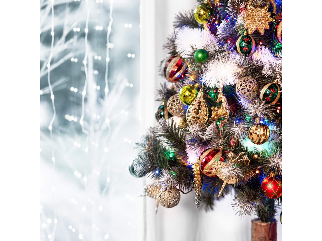 - Farba ihličia: zelená + konce konárov s dvoma druhmi polevy - biela a strieborno-glitrová.