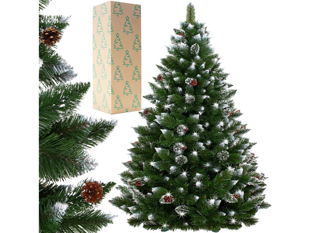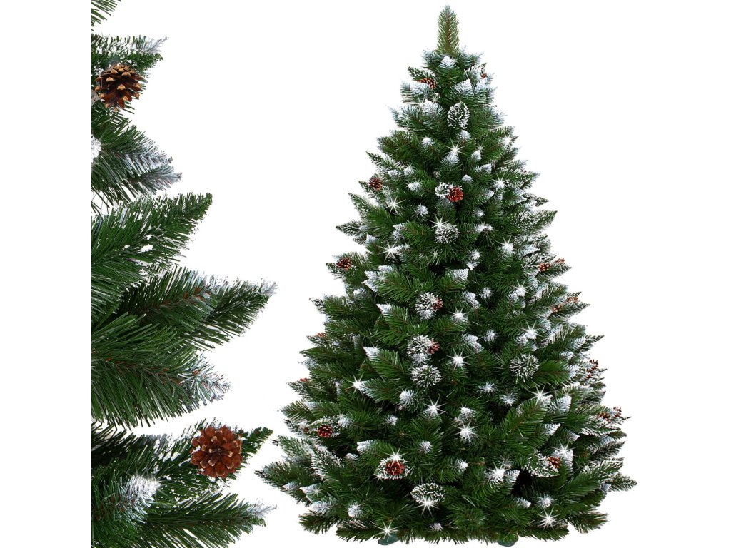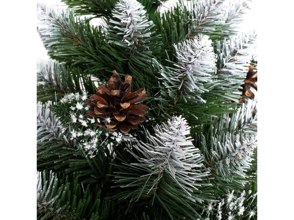 Navyše: prírodné šišky, matný efekt na konáre (biela časť, biele trblietky)