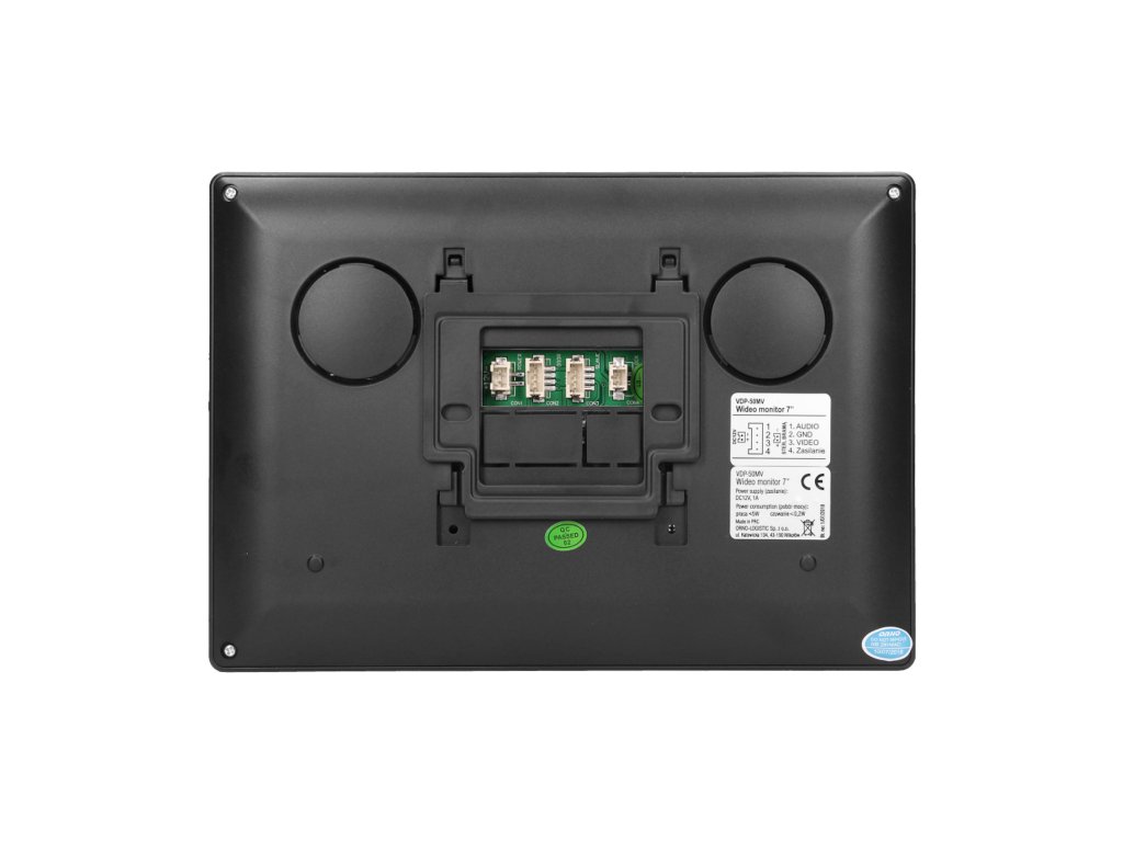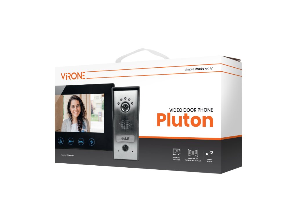 Videointerfon PLUTON BAX 7" crni s glatkim podešavanjem parametara (svjetlina, boja i glasnoća) 16 odabirljivih melodija zvona Dodirna ploča s osvijetljenim tipkama Vanjska ploča s kamerom zahtijeva površinsku montažu Opremeljen super svijetlim LED diodama koje omogućuju noćni vid Dodatna funkcija upravljanja vratima Električni udar ne zahtijeva dodatno napajanje.Tehnička Specifikacija: