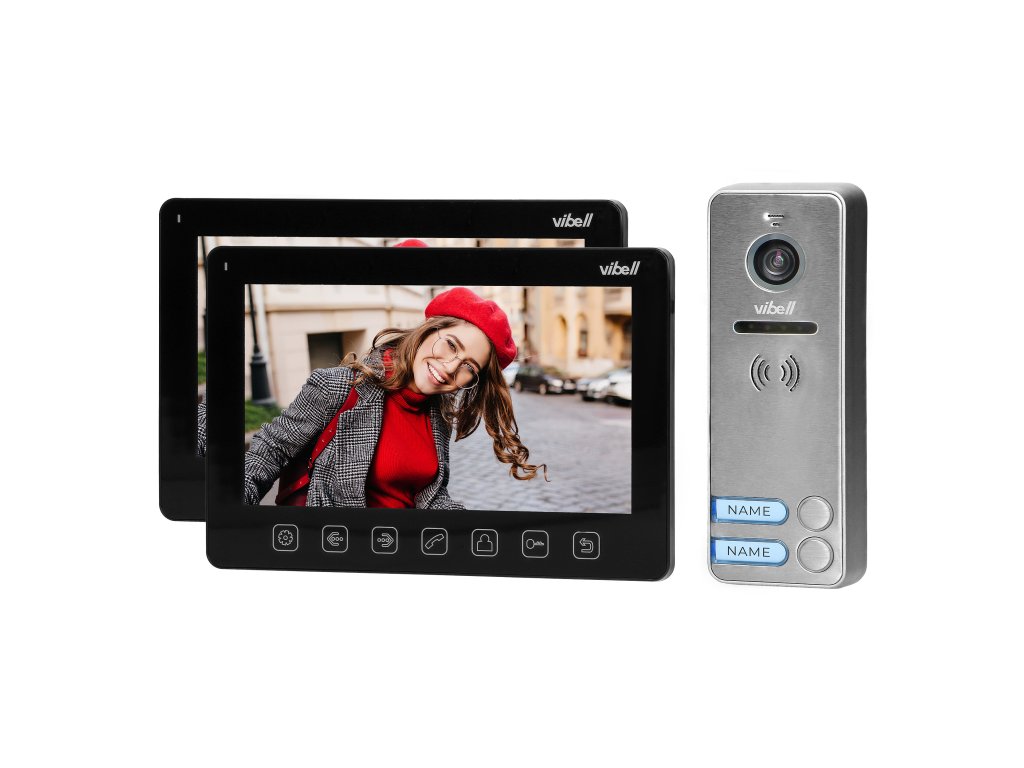 Videoparlafon NOVEO MULTI2 komplet videotelefon za dvije obitelji ne zahtijeva nikakav unifon. Sadrži plosnati 7" LCD monitor u više boja i vrlo izdržljivu širokokutnu videokameru. Ima korisnički prijateljski OSD izbornik za trenutno podešavanje parametara monitora. Komplet omogućuje funkciju upravljanja vratima i otvaranje izlaza brave izravno s panela videokamere. Dostupne boje: crna i bijela.Tehničke specifikacije Opće informacije:
