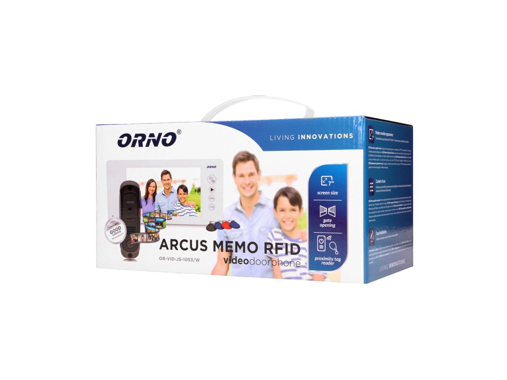 Video portafon ARCUS bijeli opremljen ultra tankim LCD monitorom s kontinuiranim podešavanjem parametara (svjetlina, glasnoća poziva i zvona), 9 odabranih zvona, dodirnom pločom s osvijetljenim tipkama i dodatnom funkcijom upravljanja vratima. Unutarnji memorijski modul monitora pohranjuje oko 20 snimaka u boji, dok snimke bilježi u automatskom načinu rada. CCD kamera s rupicama na vanjskom panelu otpornim na vandalizam opremljena je infracrvenim osvjetljenjem koje omogućava noćni vid. Surađuje s promixovim markama napajanja istosmjernom strujom iz napajanja od 13,5 V DC. Električni udarnik s potrošnjom energije maksimalno 500 mA ne zahtijeva dodatno napajanje.Tehnička specifikacija: