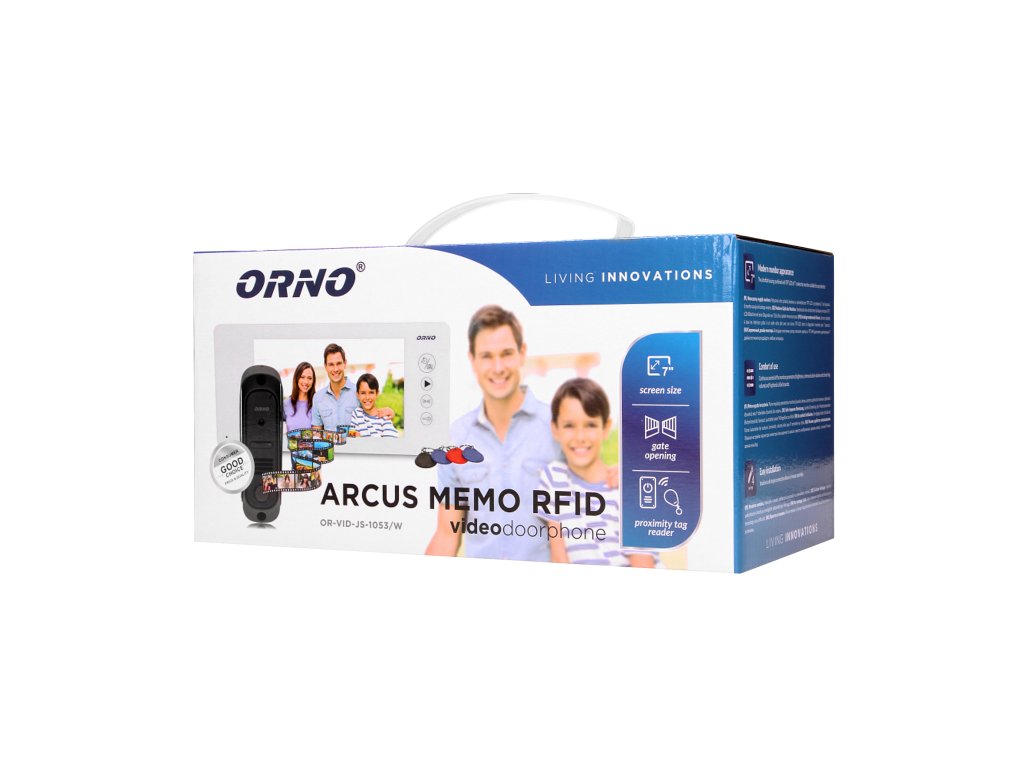 Video-interfon ARCUS crne boje opremljen ultra tankim LCD monitorom s glatkim podešavanjem parametara (svjetlina, glasnoća poziva i zvona), 9 odabirnih melodija zvona, dodirnom pločom s pozadinskim osvjetljenim tipkama i dodatnom funkcijom upravljanja vratima. Unutarnji memorijski modul monitora pohranjuje oko 20 fotografija u boji, te snima fotografije u automatskom načinu rada. CCD kamera s pinhole objektivom na vanjskoj ploči otpornoj na vandalizam opremljena je infracrvenim osvjetljenjem koje omogućava noćni vid. Radi s promiksovim brendovima napajanjem istosmjernim tokom od izvora napajanja do utičnice 13,5 V DC. Električna utvrda s maksimalnom potrošnjom energije od 500 mA ne zahtijeva dodatno napajanje.Sažetak tehničke specifikacije: