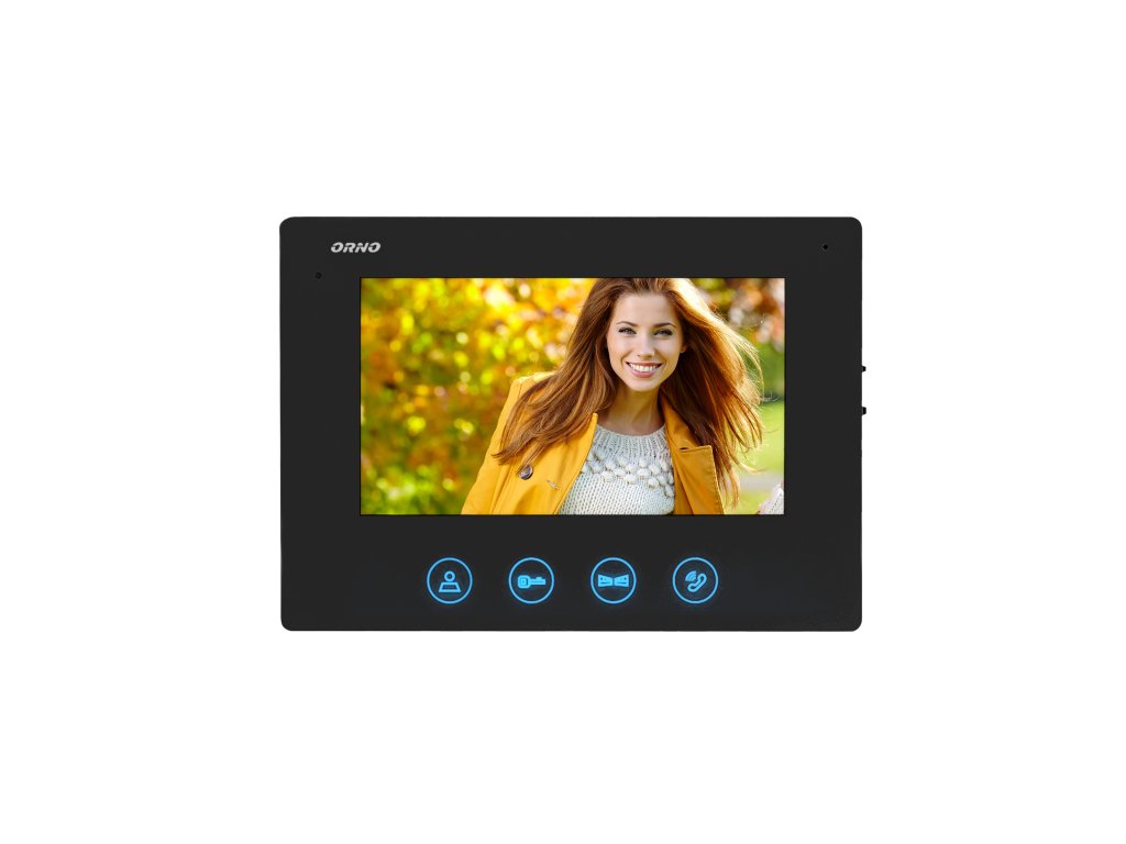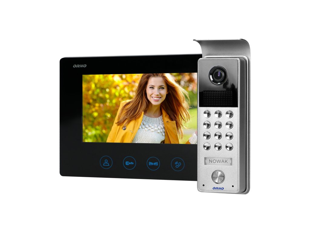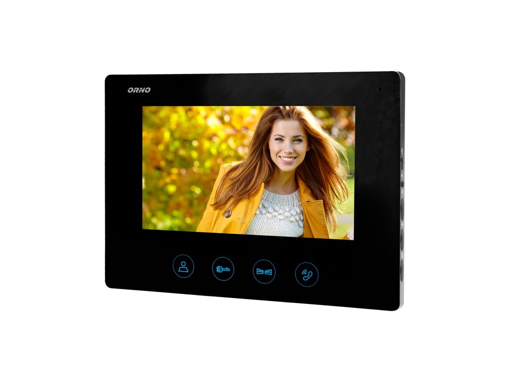 Ovaj moderan set video portafona sadrži ultra tanki 7" LCD monitor s dodirnom pločom i osvijetljenim tipkama. Parametri monitora (svjetlina, kontrast boja, ton zvona i glasnoća razgovora) mogu se glatko podešavati. Korisnici mogu birati između 16 dostupnih zvona. Ostale značajke seta su: vanjska ploča sa CMOS kamerom, dodatna zaštitna kapuljača i pločica s imenom. Infracrveno osvjetljenje omogućuje pravilnu noćnu vidljivost. Set uključuje numeričku tipkovnicu za otvaranje brave vrata kodom i može kontrolirati otvaranje kapije. Pogodan za površinsku montažu.