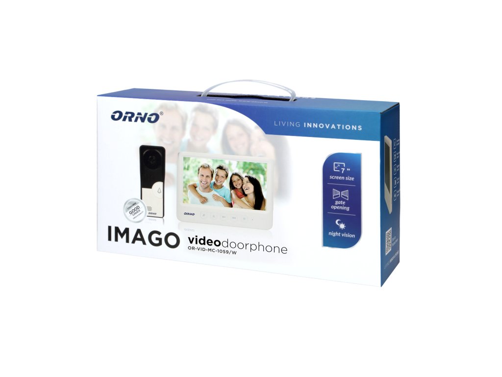 Videointerfon IMAGO, 7" bijeli dostupan u dvije boje (bijela i crna), opremljen izuzetno tankim 7" LCD monitorom s glatkim podešavanjem parametara (svjetlina, kontrast boja i jačina zvuka), 16 odabranih zvona i dodatnom funkcijom upravljanja vratima. Vanjski panel s CMOS kamerom zahtijeva površinsku montažu (zaštitni poklopac protiv kiše je uključen). Opremljen je infracrvenim osvjetljenjem koje omogućuje noćno gledanje i dodatnom funkcijom upravljanja vratima. Napajanje istosmjernom strujom iz izvora napajanja u utičnicu 12 V DC. Električna brava s potrošnjom energije najviše 500 mA ne zahtijeva dodatno napajanje.Tehnička Specifikacija: