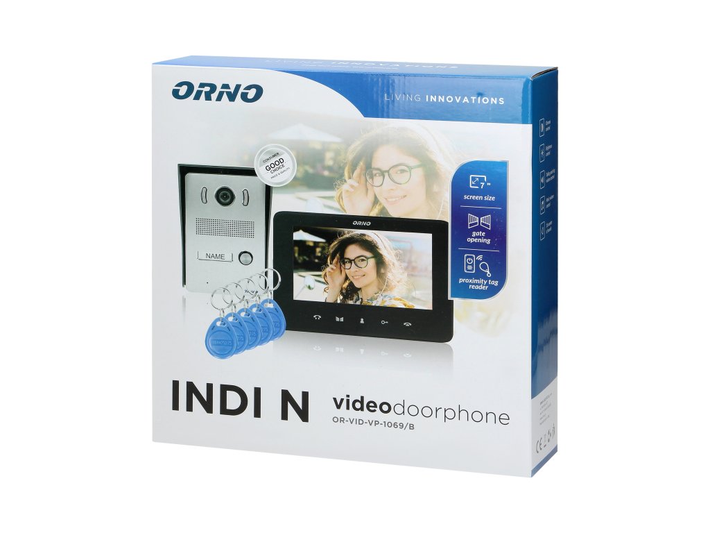 Komplet video portafona uključuje LCD monitor u više boja, ultra tanki 7" s dodirnim panelom i osvijetljenim tipkama. Parametre monitora (svjetlina i boja, jačina govora i zvona) moguće je podesiti. Na raspolaganju je 16 zvona. Vanjska jedinica s CMOS kamerom prikladna je za površinsku montažu. Ima zaštitni krov, natpisnu pločicu i jasne LED diode koje pružaju izvrsnu noćnu vidljivost. Bravu je moguće otpustiti pomoću blizinskog privjeska. Set također podržava otvaranje vrata te ako na to spojite dodatni monitor, možete aktivirati funkciju interkoma. Izvor istosmjerne struje iz napajanja u električnu utičnicu (15V DC) ili opcionalno iz napajanja na DIN šinu (OR-VID-VP-1009ZD) prikladan je za 12V DC i potrošnju energije max 300mA. Nije potrebno dodatno napajanje.