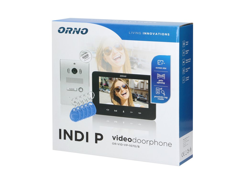 Set video portafona sadrži višebojni, ultraplatki 7-inčni LCD monitor s dodirnom pločom i osvijetljenim tipkama. Postavke monitora (svjetlina i boja, glasnoća govora i zvona) je moguće prilagoditi. Na raspolaganju je 16 zvona. Vanjska jedinica s CMOS kamerom prikladna je za ugradnju. Ima zaštitni krov, ime i jasne LED diode koje omogućuju izvrsnu noćnu vidljivost. Zaključavanje je moguće otključati putem proximity oznake. Osim toga, set može podržati otvaranje vrata, a ako se poveže dodatni monitor, možete aktivirati funkciju interkoma. Napajanje putem ispravljača u električnu utičnicu (15V DC) ili opcionalno iz napajanja na DIN šini (OR-VID-VP-1009ZD). Električni udarnik prikladan je za istosmjerni napon 12V i potrošnju max 300mA. Dodatno napajanje nije potrebno.