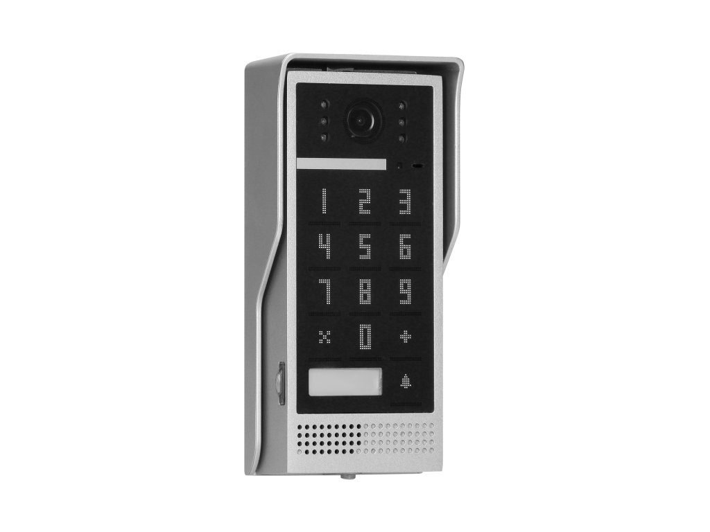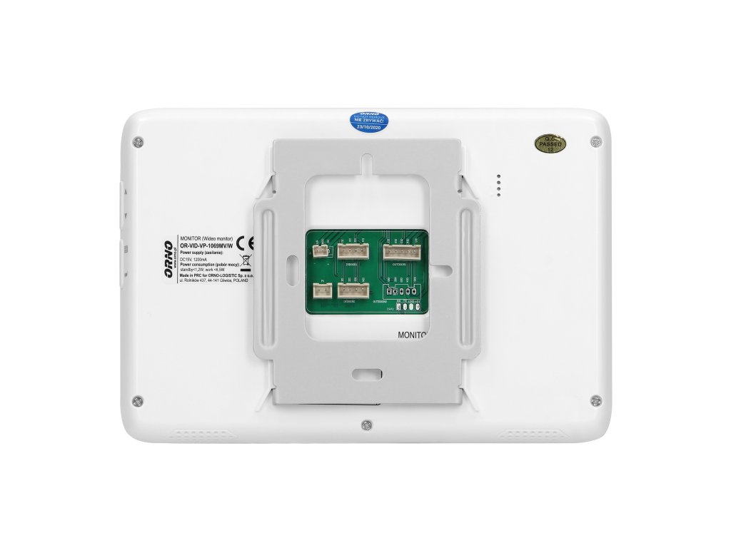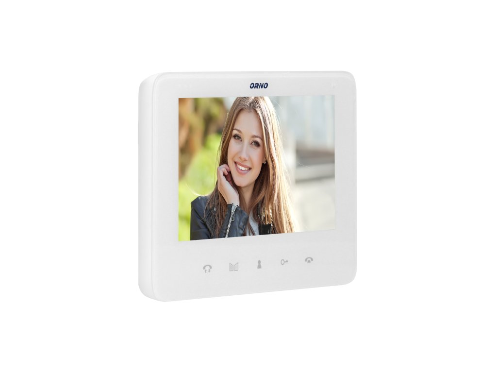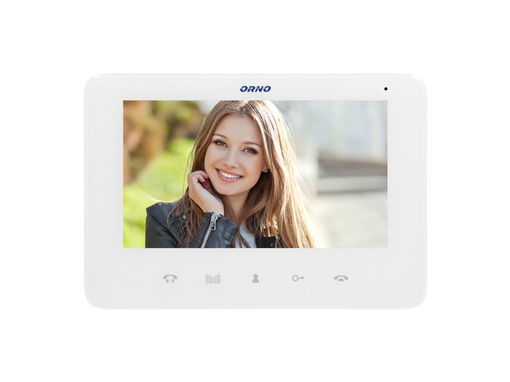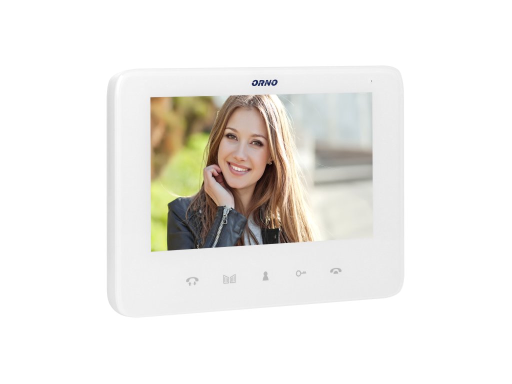 Videopozivnik SCUTI bijeli sadrži višebojni, vrlo plosnati 7" LCD monitor s dodirnim panelom i osvijetljenim tipkama. Parametri monitora (svjetlina i boja, glasnoća govora i zvona) mogu se postaviti. Na raspolaganju je 16 zvona. Vanjska jedinica s CMOS kamerom pogodna je za montažu na površini. Ima zaštitni pokrov, natpisnu pločicu i infracrvene diode koje osiguravaju izvrsno noćno gledanje. Vanjska jedinica dodatno ima osvijetljenu numeričku tipkovnicu (kodna brava) koja omogućuje pristup samo ovlaštenim posjetiteljima. Set podržava otvaranje vrata, a ako na njega spojite dodatni monitor, možete aktivirati funkciju interfona. Napajanje istosmjernom strujom iz jedinice u električnu utičnicu (15 V DC) ili opcionalno iz napajanja na DIN šinu (OR-VID-VP-1009ZD). Električna šipka prikladna za 12V DC i potrošnju energije max. 300 mA ne zahtijeva dodatni izvor napajanja.Tehnička specifikacija: