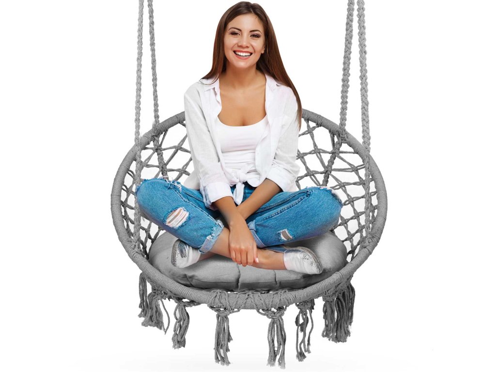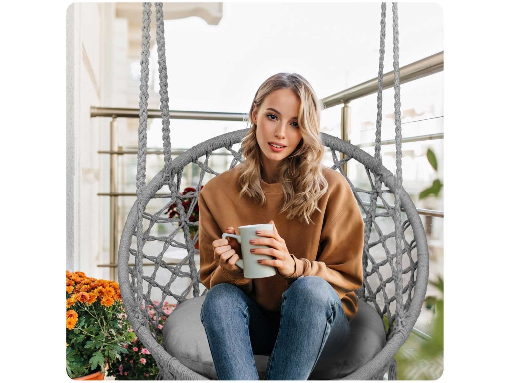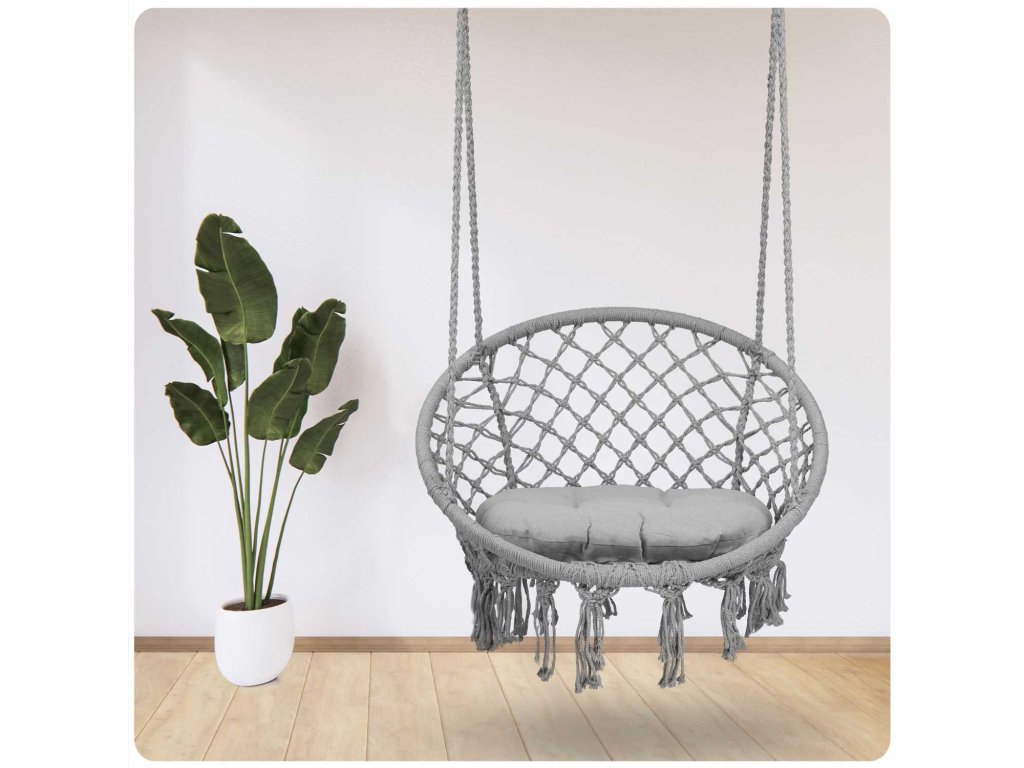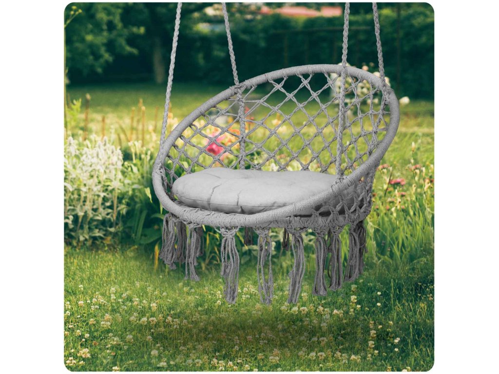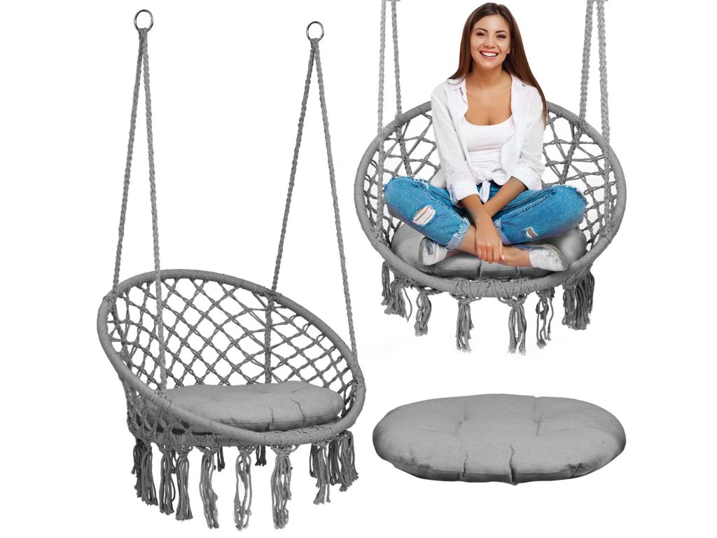 Viseća ljuljačka stolica BOHO siva + jastuk