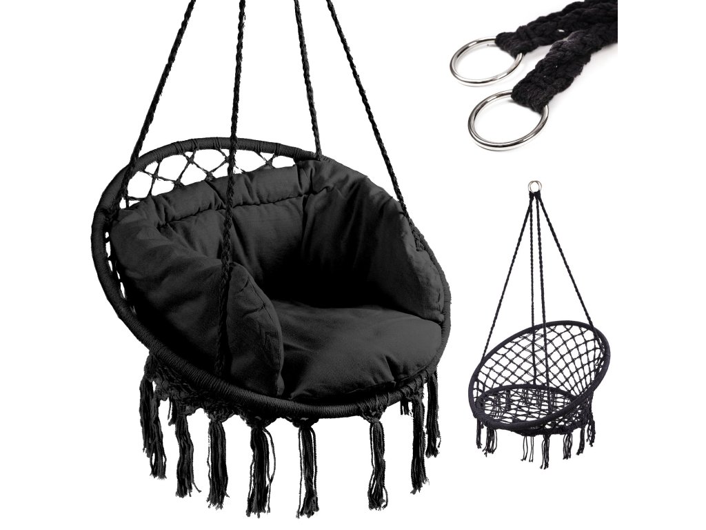 Viseća stolica Rodino gnijezdo s naslonom crna 80 cm + jastuci
