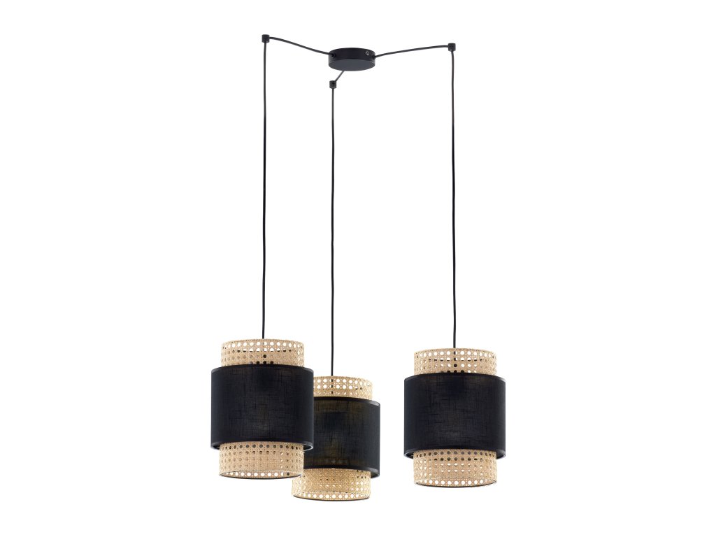 Kombinacija platnenog sjenila s ratanom stvara skladnu cjelinu koja uljepšava svaki interijer. Model ima prostor za tri izvora svjetlosti s grlom E27 i maksimalnom snagom od 60W.