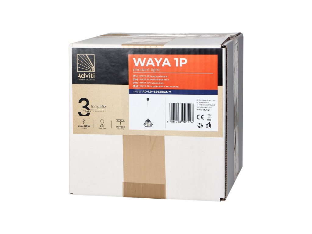 Viseća svjetiljka WAYA, maks. snaga 1x60W, E27, crna