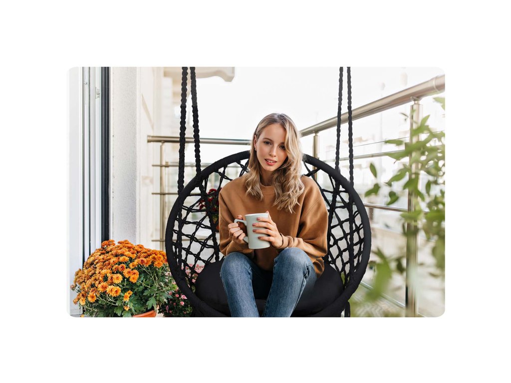Udobna viseća stolica u modernom i trenutno popularnom boho stilu.