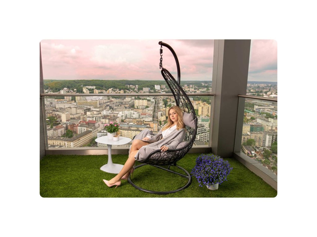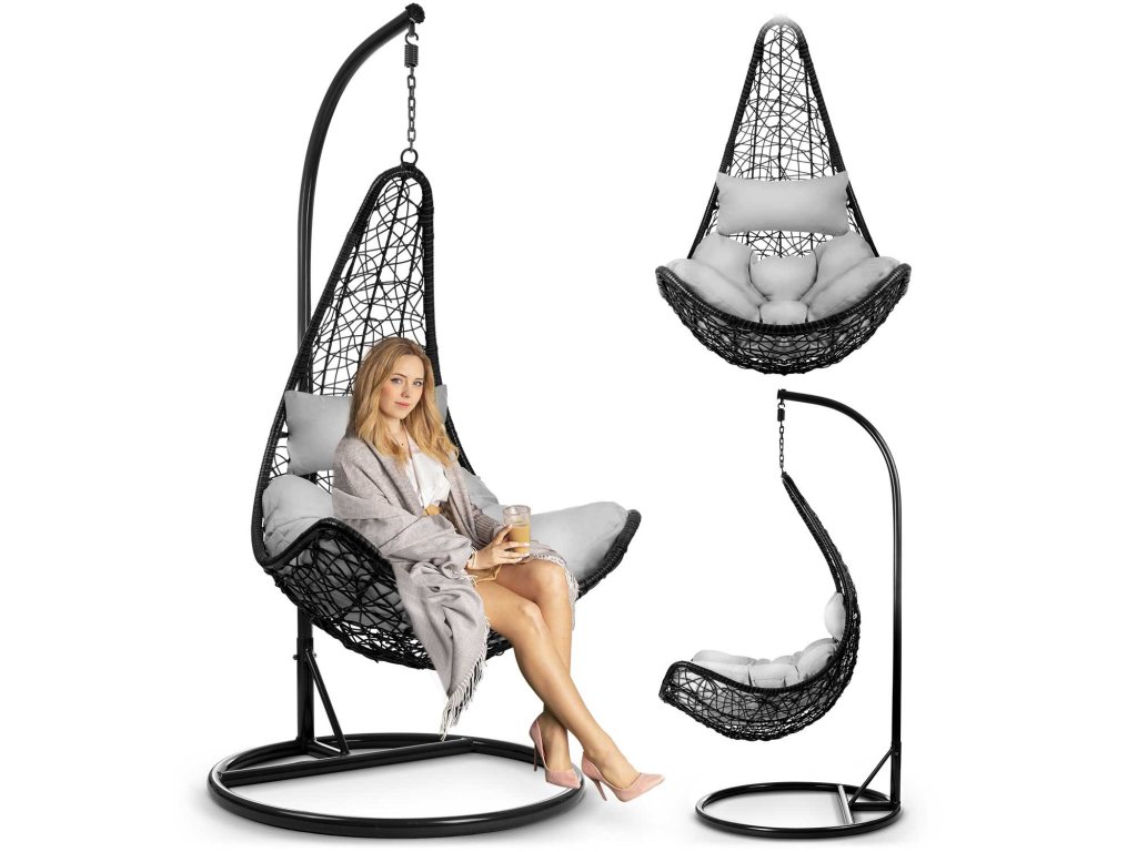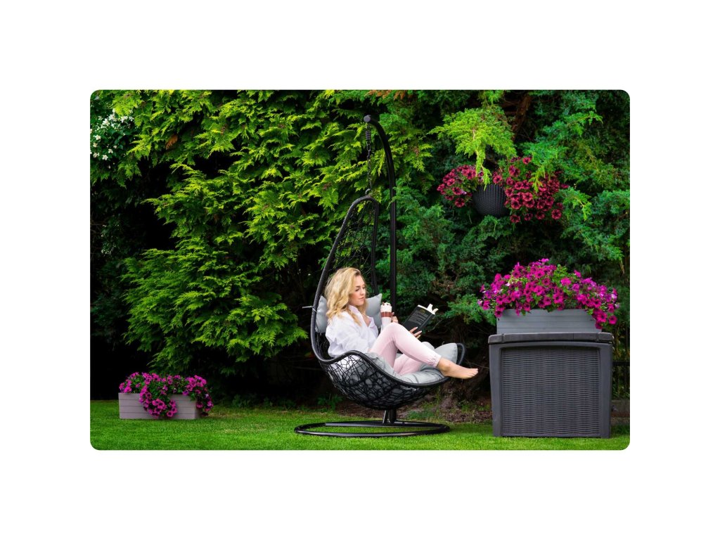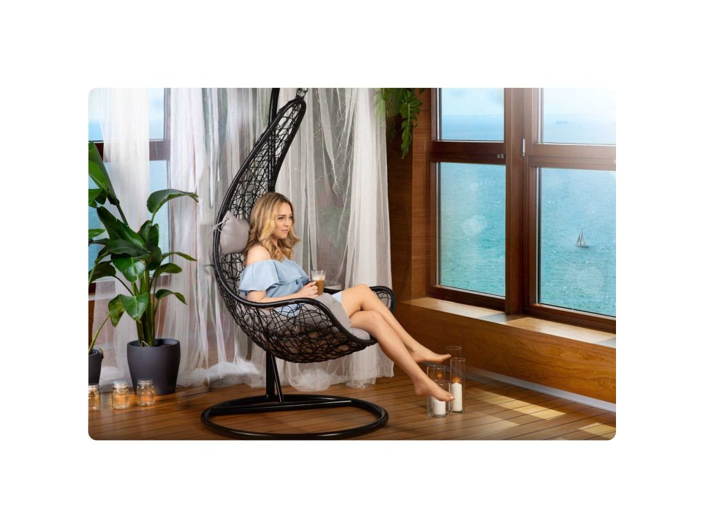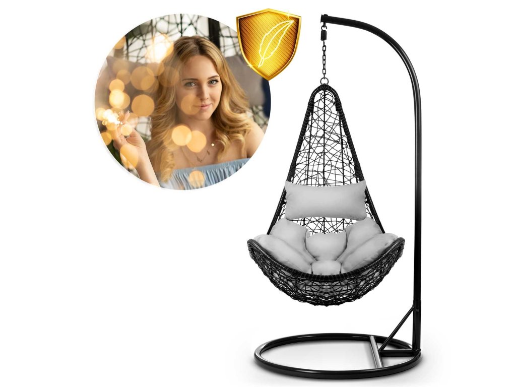 Viseća vrtna stolica Cabana crna + sivi jastuci