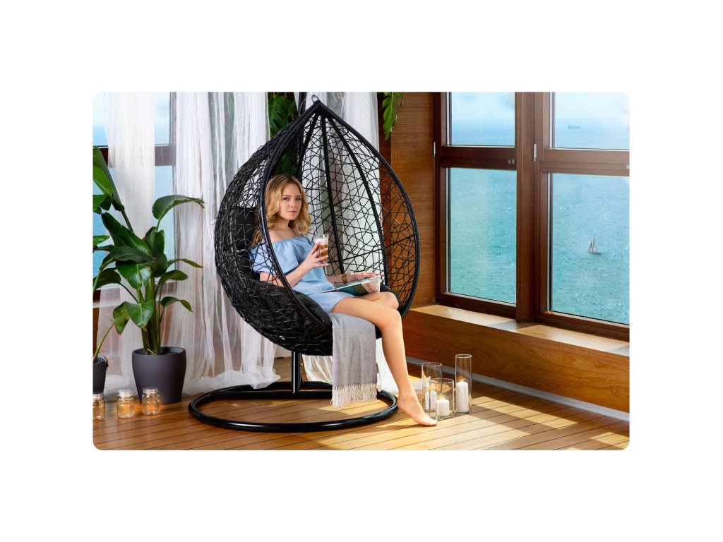 Viseća vrtna stolica Hawana crna + crni jastuci Sofotel