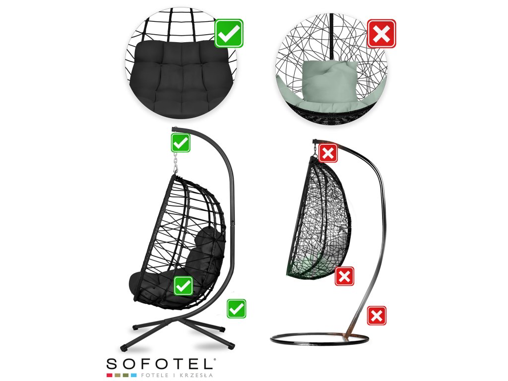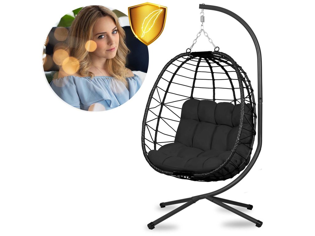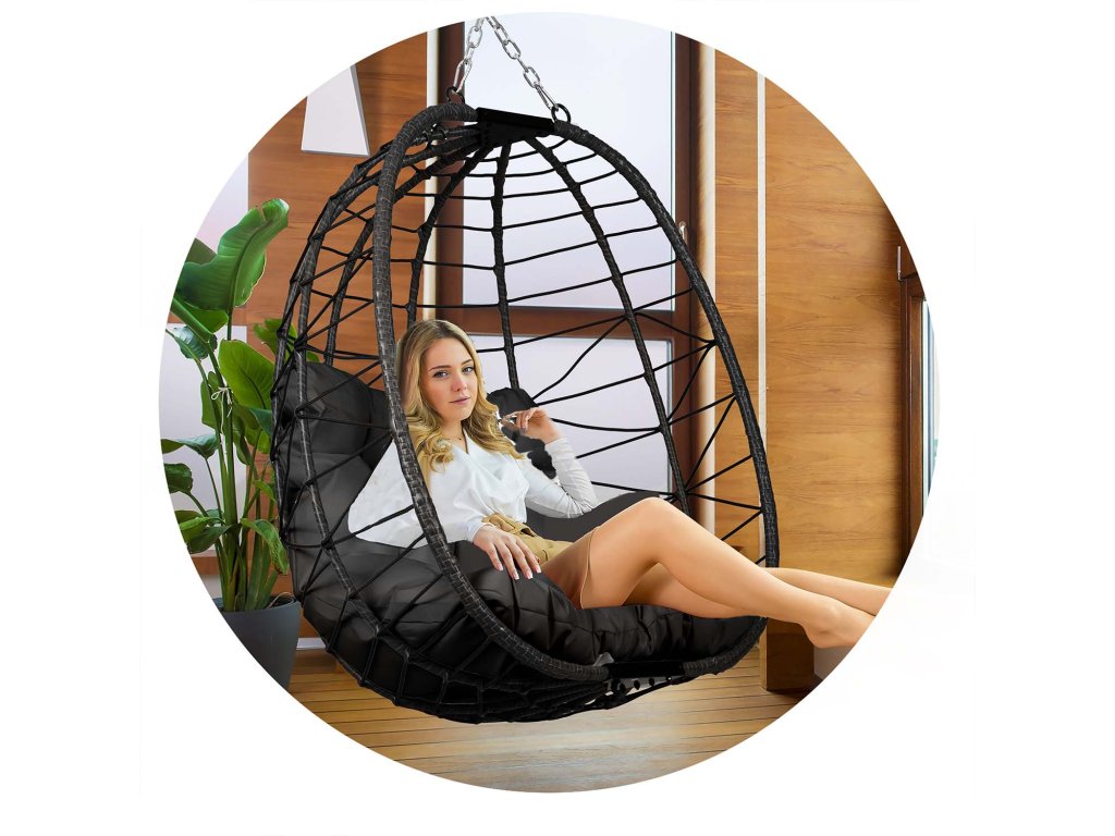 Viseca vrtna stolica Tihuana crna + crni jastuci Sofotel
