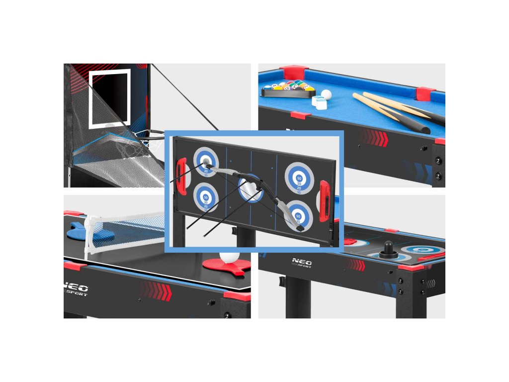 Igraći stol – NS 801 donosi zabavu na novu razinu! Osim uzbudljivih utakmica, možete iskušati gađanje lukom i strijelom u metu. Meta za streličarstvo dodaje natjecateljski element i igra će biti odlična zabava s prijateljima i djecom!