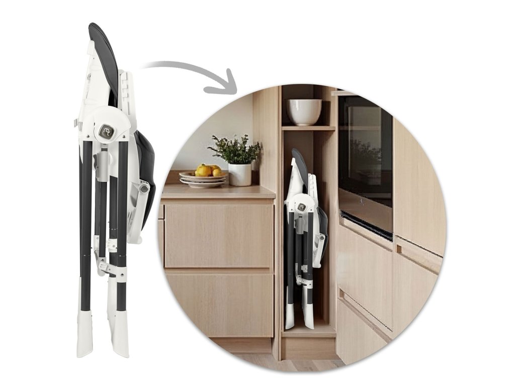 Stolica omogućuje slobodno prilagođavanje udaljenosti pladnja od djeteta. Također se može u svakom trenutku potpuno rastaviti.