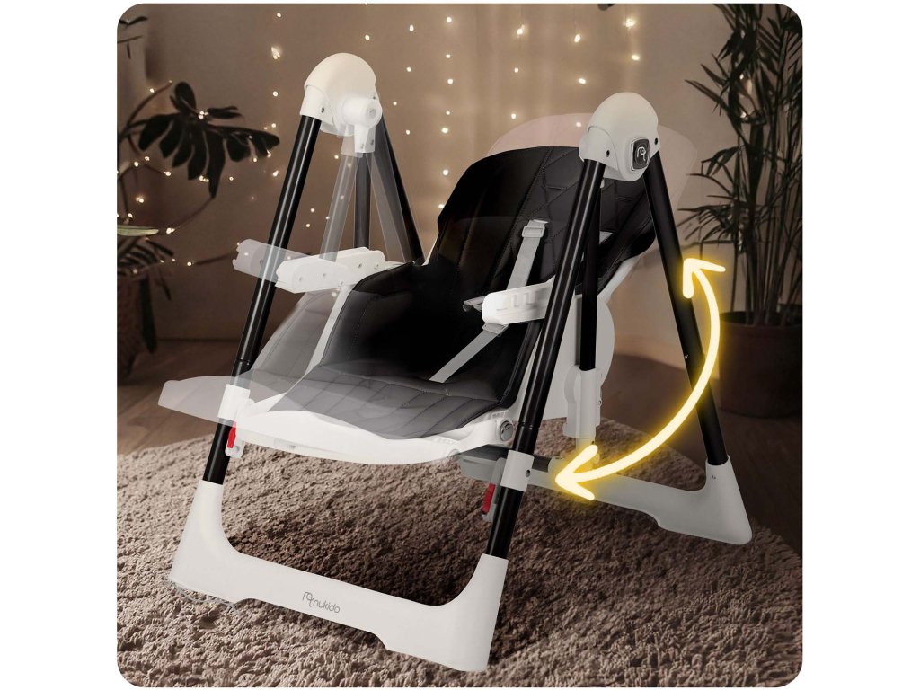 Možete nahraniti bebu u stolici s pladnjem, a nakon obroka ukloniti pladanj, spustiti sjedalo i pretvoriti stolicu u ljuljačku kako bi dijete moglo mirno odmarati.
