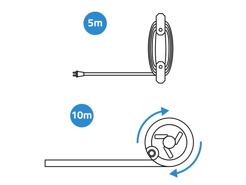 5 m nosač kabela - brzo i učinkovito namatanje nakon rada i dodatna pogodnost prilikom skladištenja.