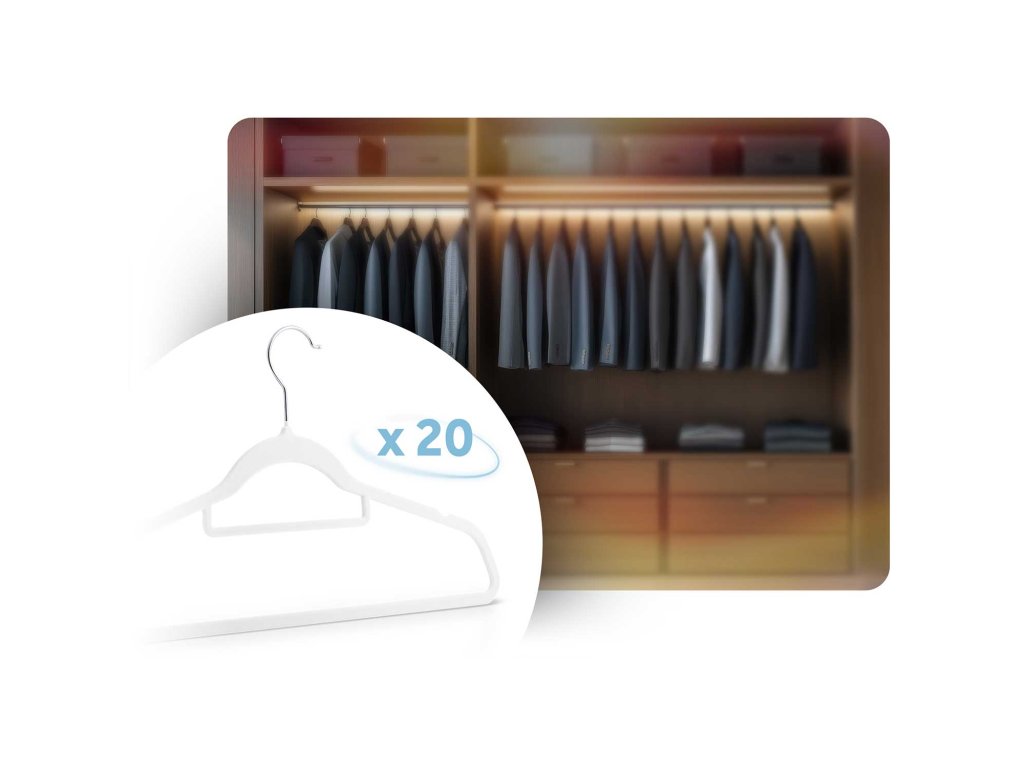 Set od 20 dijelova jamči da svaki komad vaše garderobe pronađe svoje mjesto i budete organizirani s lakoćom i stilom!