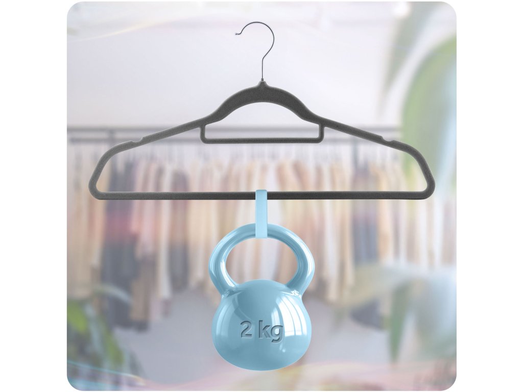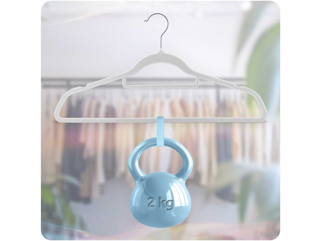 Kvalitetna jezgra od PP - prekrivena kvalitetnim velurom sprječava klizanje odjeće s vješalice. Ne deformira odjeću, čvrsta i izdržljiva.